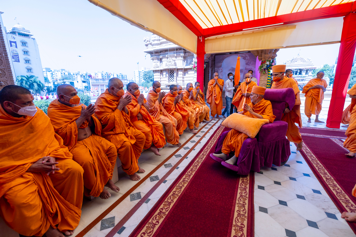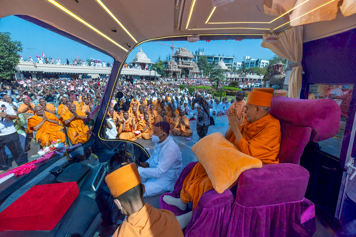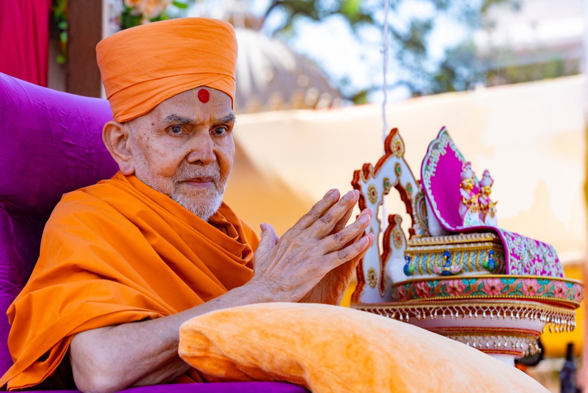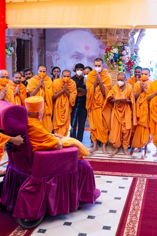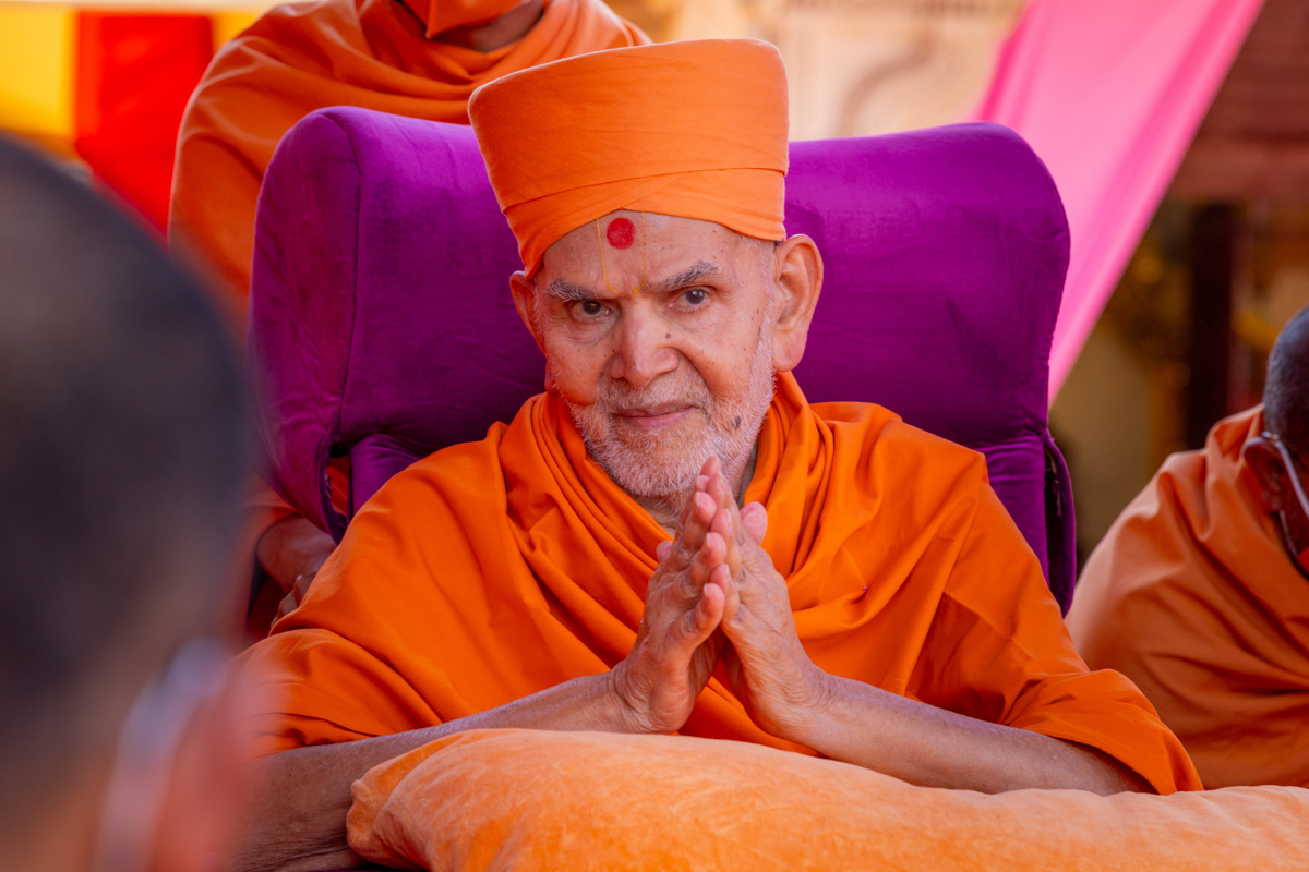 Swamishri greets all with folded hands