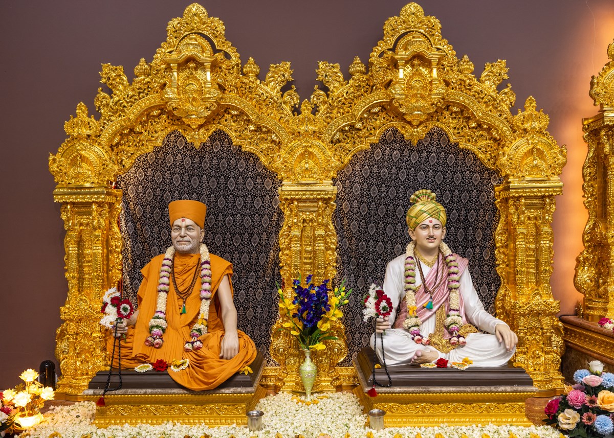Shri Harikrishna Maharaj and Shri Gunatitanand Swami Maharaj in Swamishri's daily puja