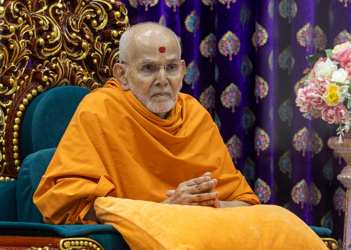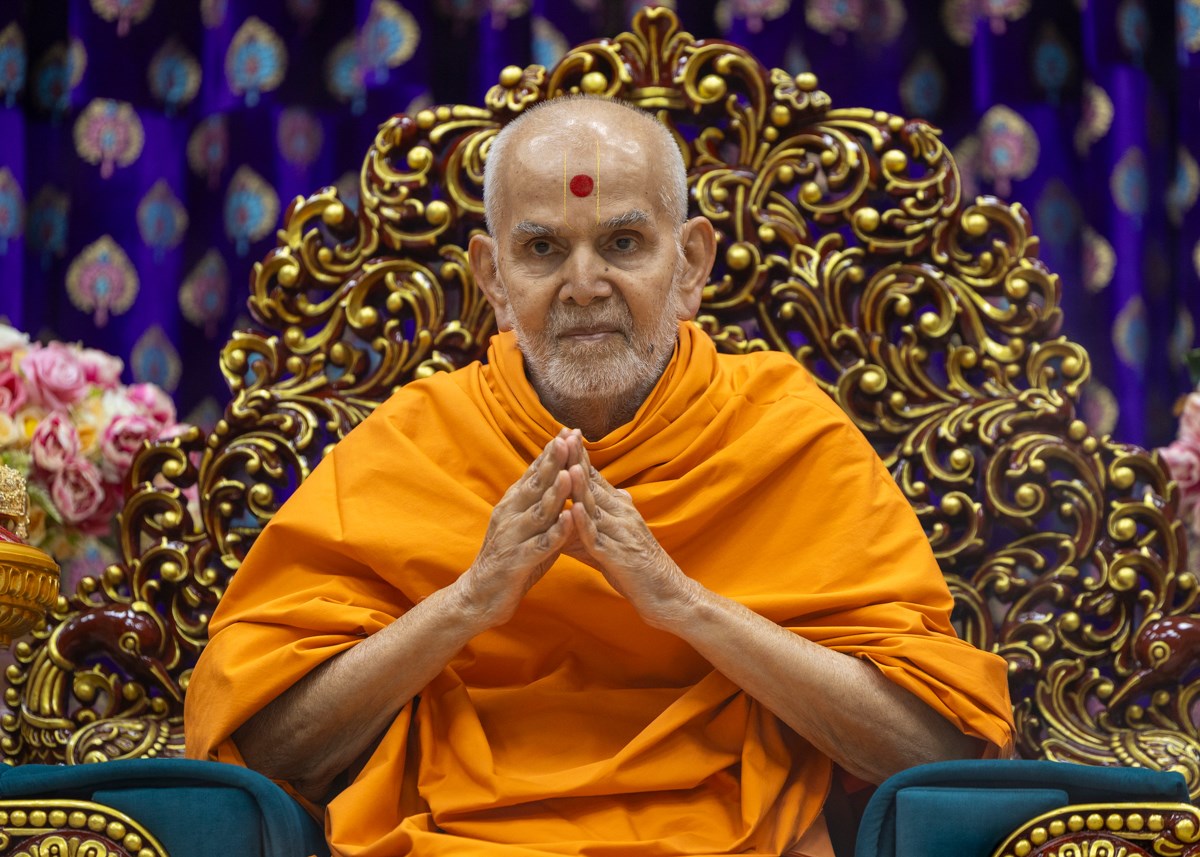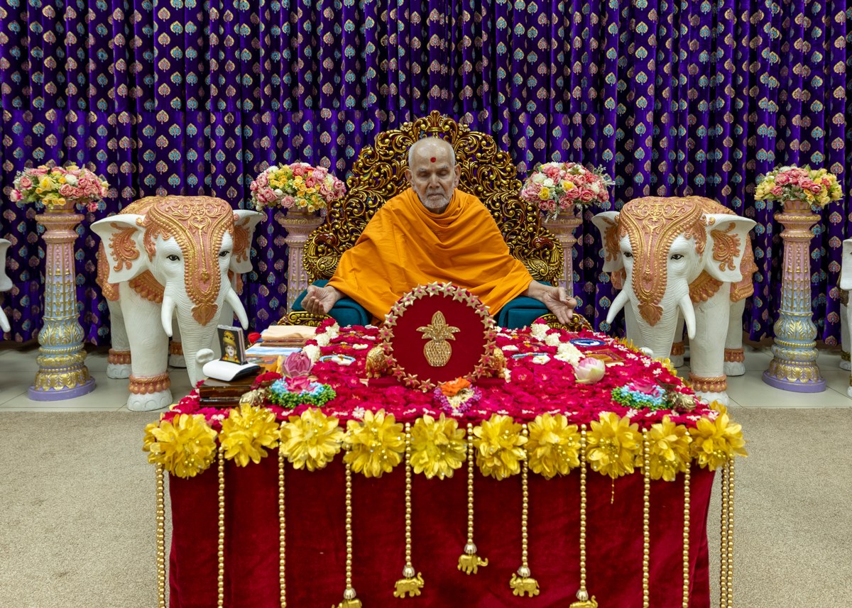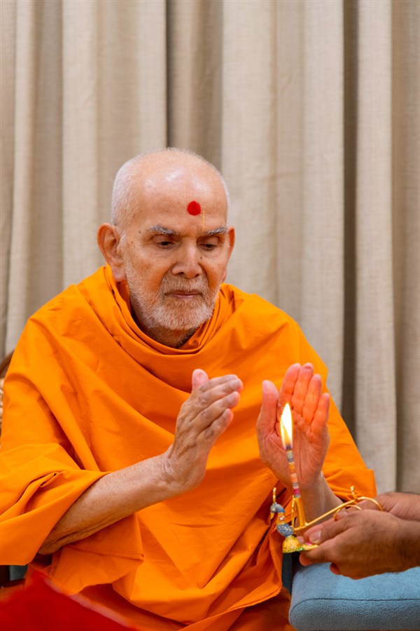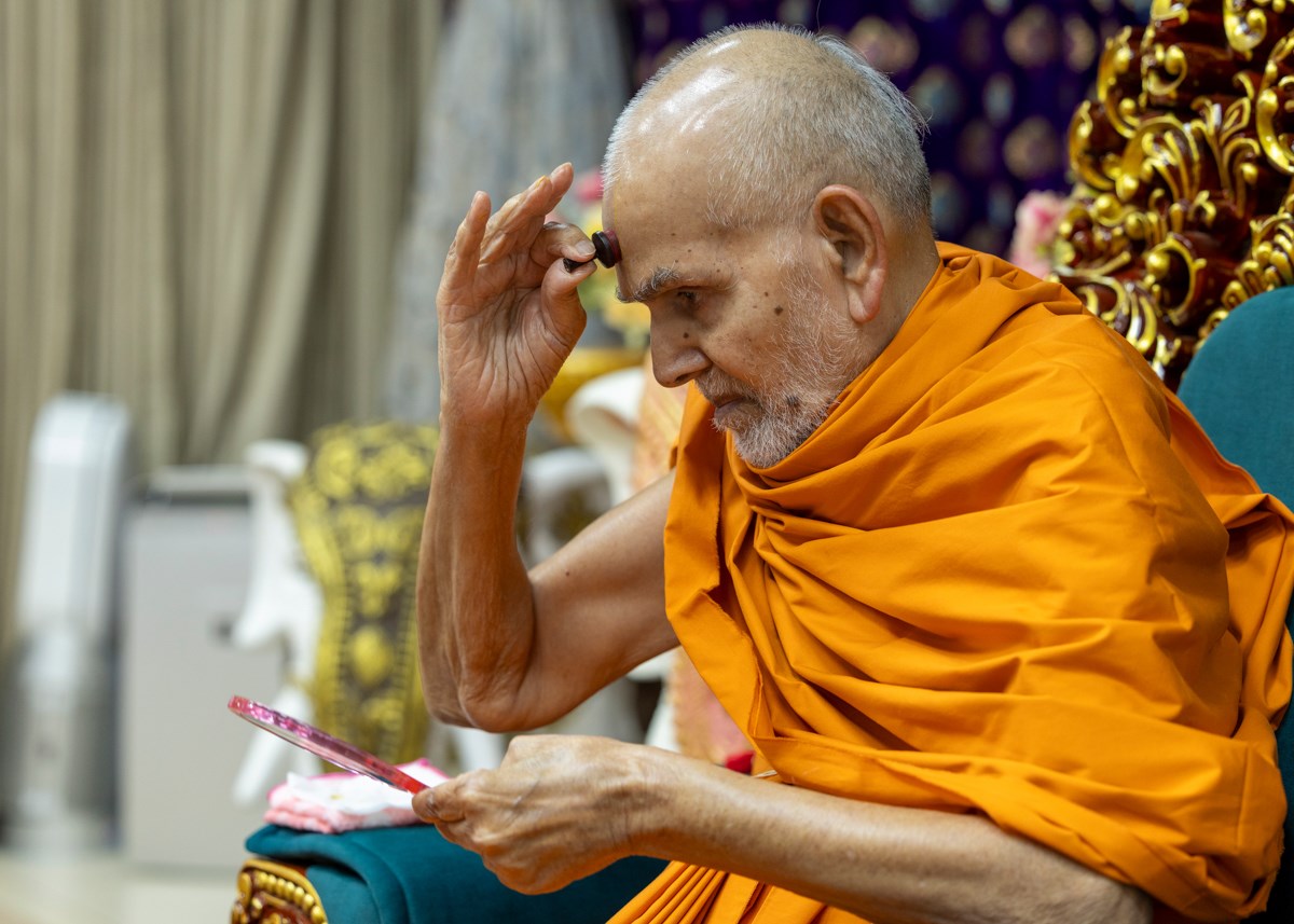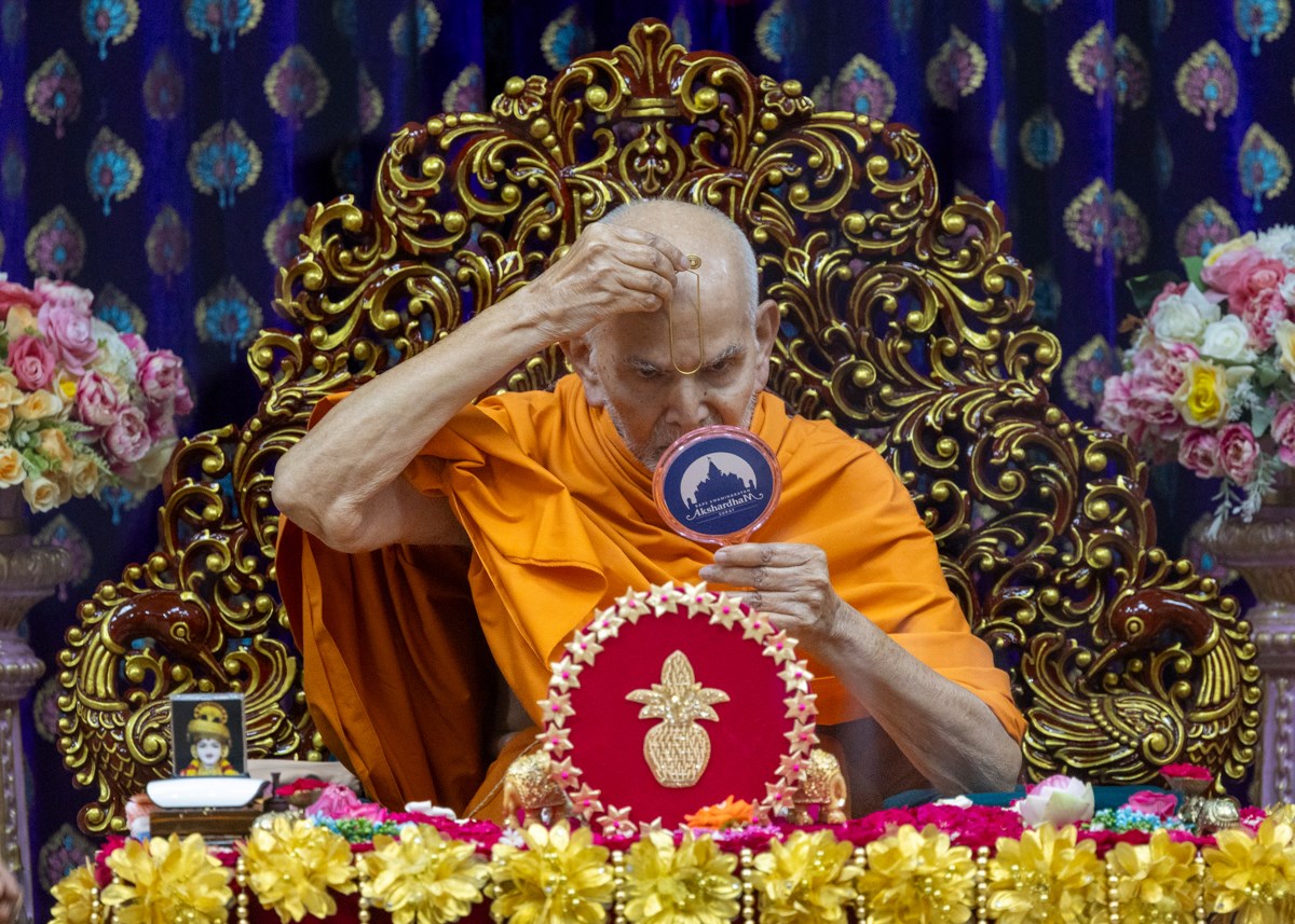 Param Pujya Mahant Swami Maharaj applies a tilak on his forehead