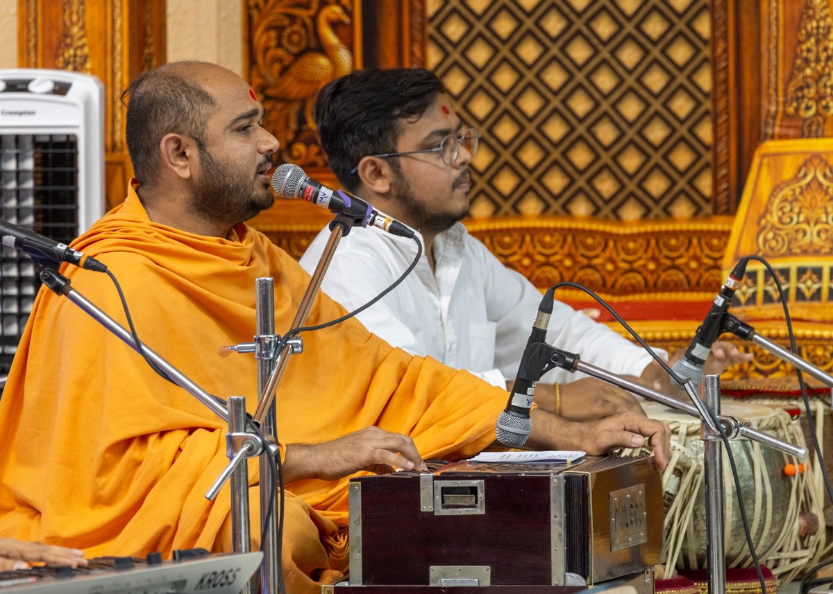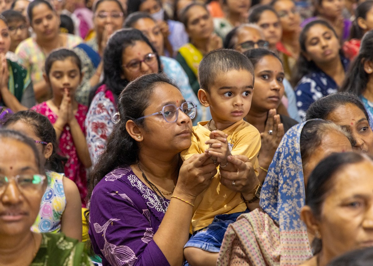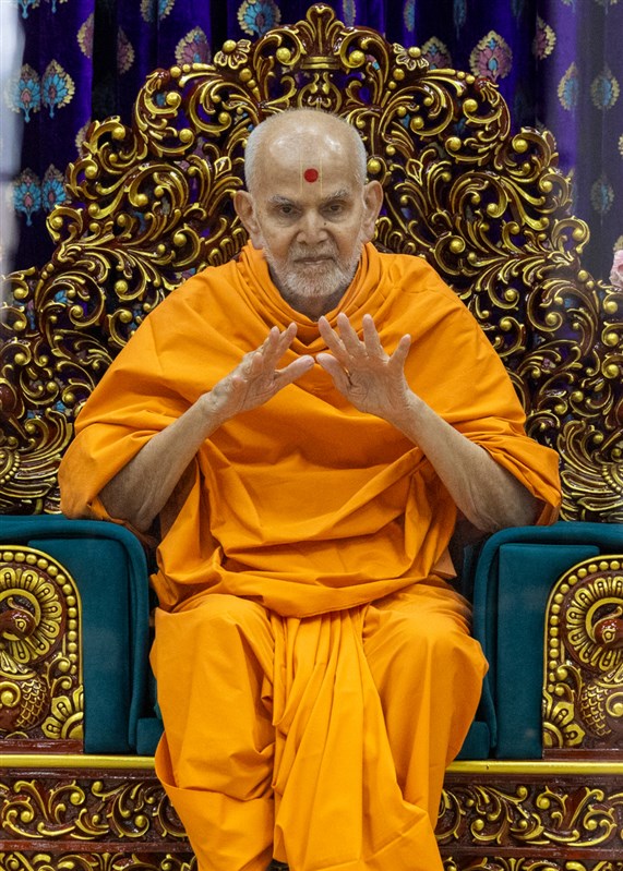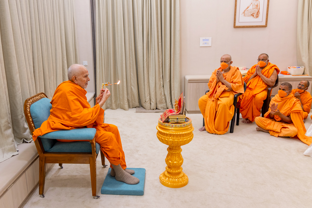 Balaks lead everyone in reciting the sadhana mantra and daily prayer in Swamishri's puja