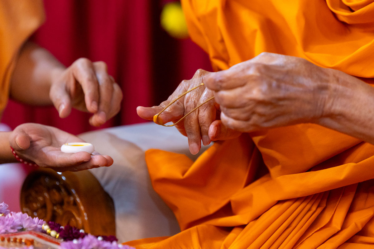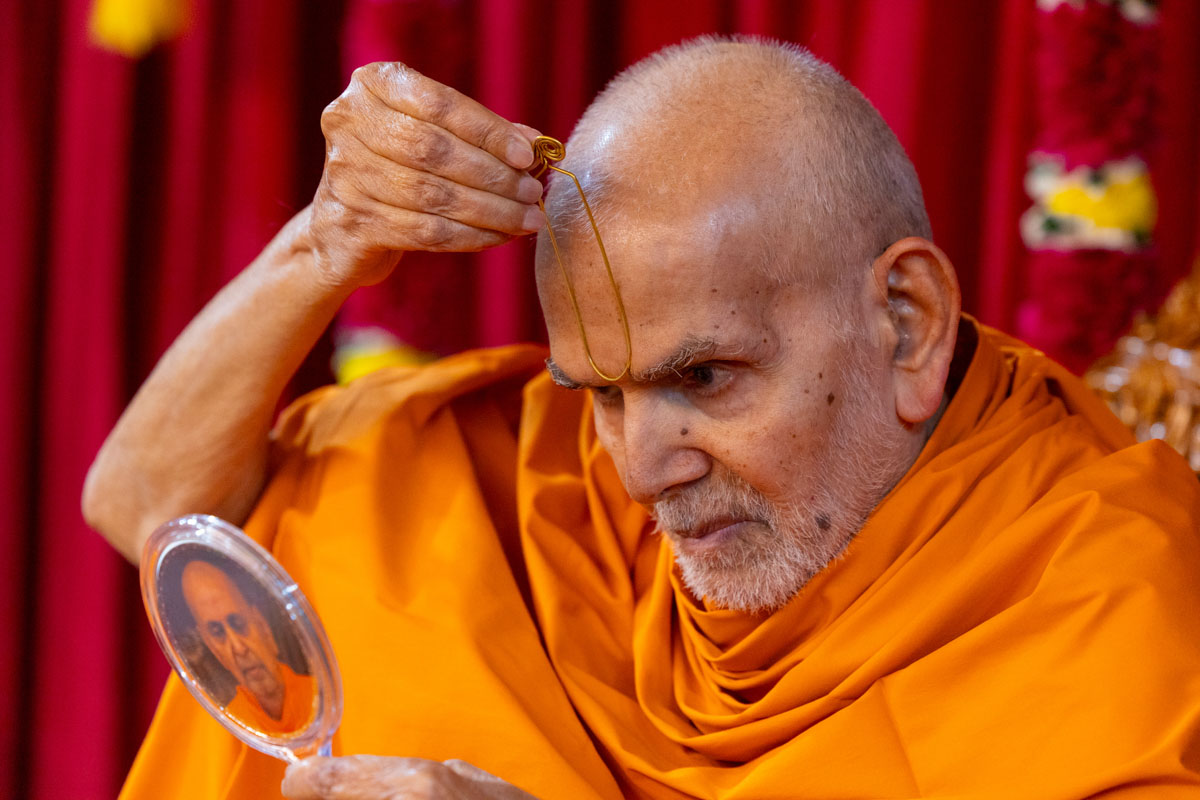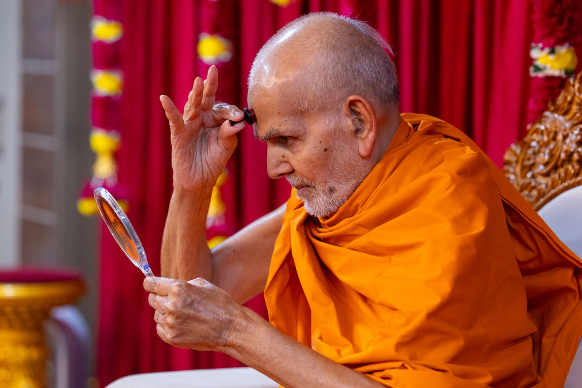 Param Pujya Mahant Swami Maharaj applies a tilak on his forehead