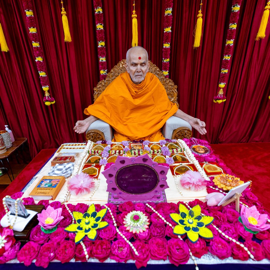 Decoration in Swamishri's daily puja
