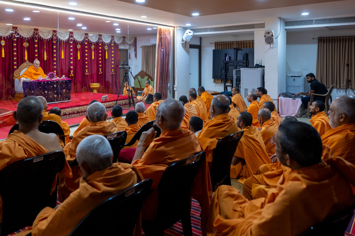 Swamishri blesses the morning assembly