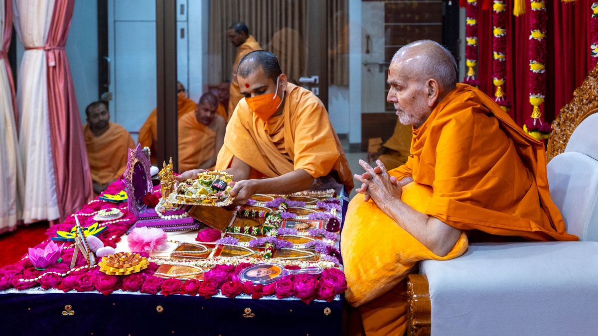 Swamis doing Swamishri's puja darshan