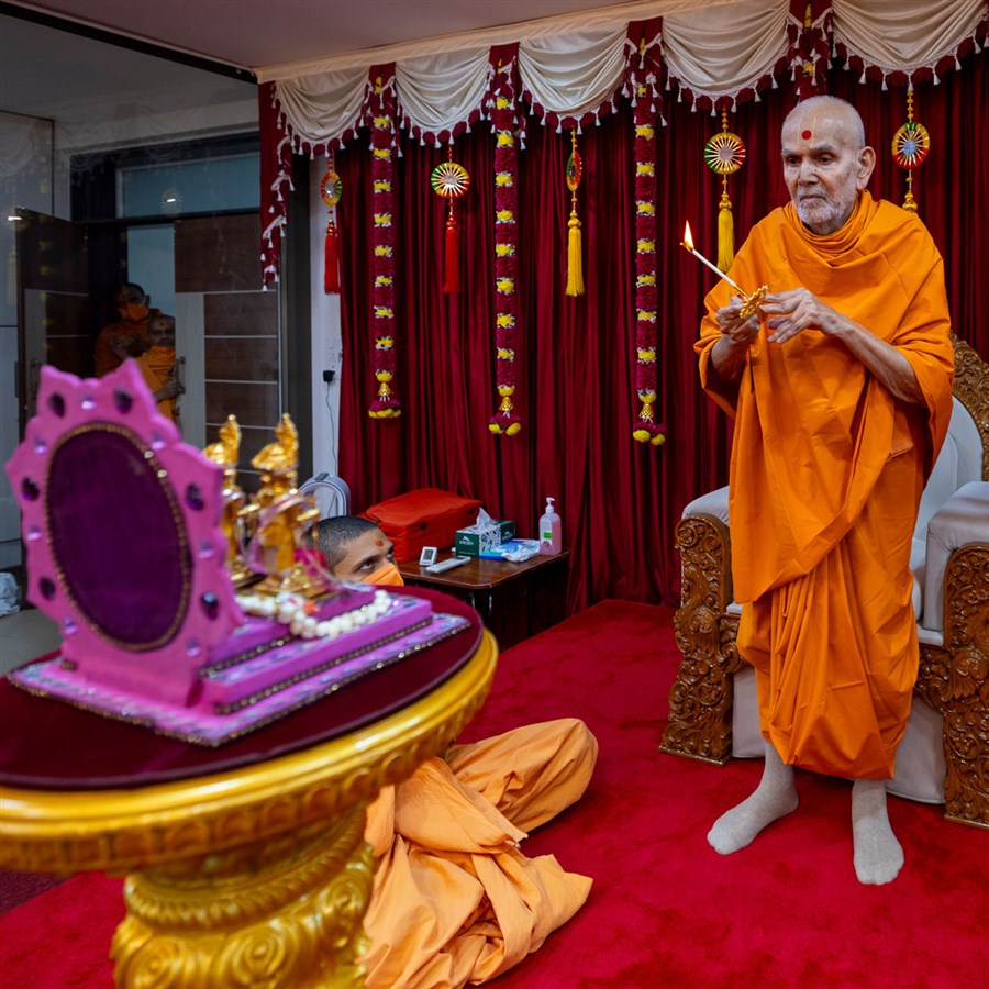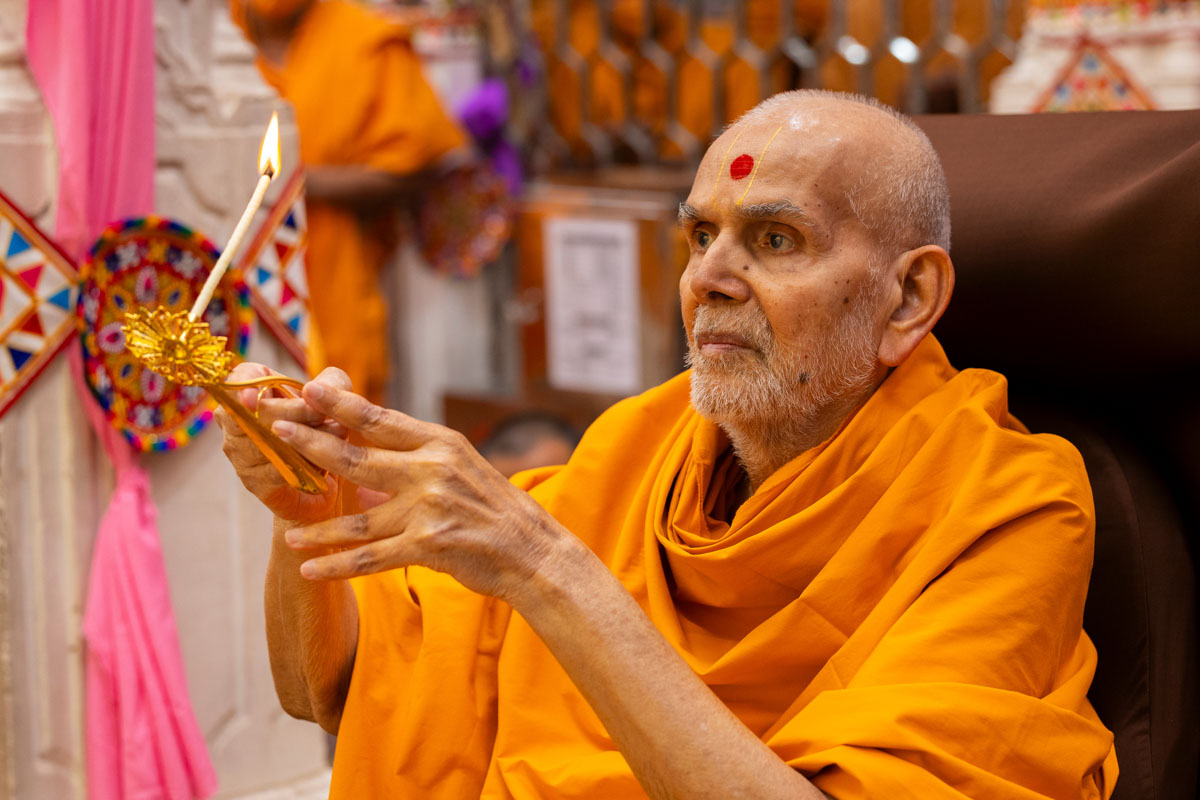 Swamishri performs the morning arti