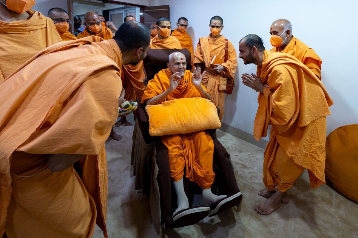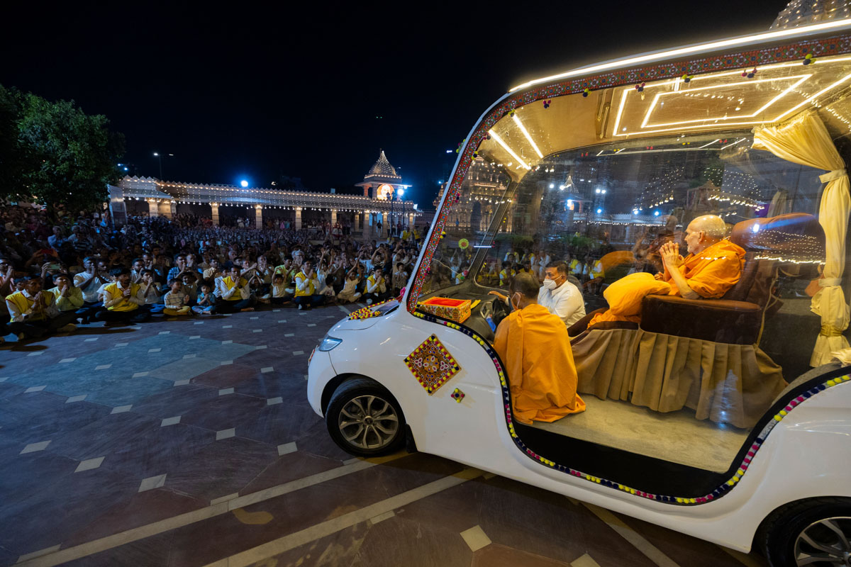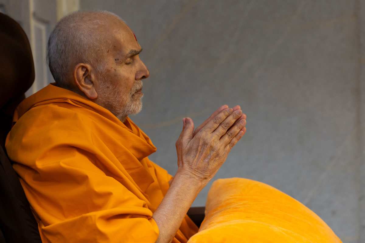 Swamishri greets all with folded hands