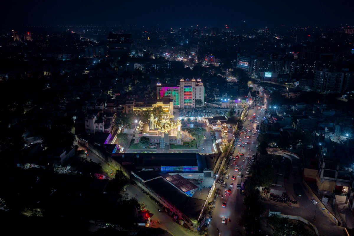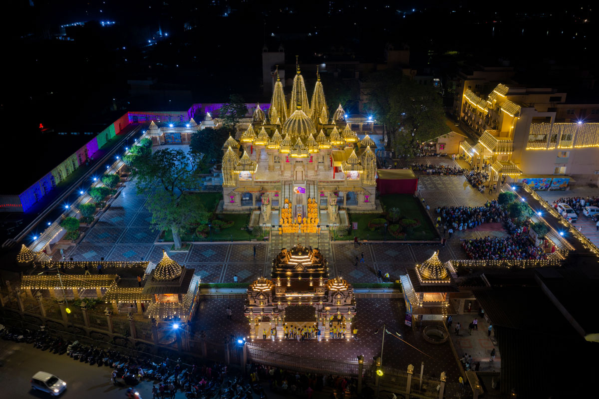 Aerial view of the BAPS Shri Swaminarayan Mandir, Atladara (Vadodara)
