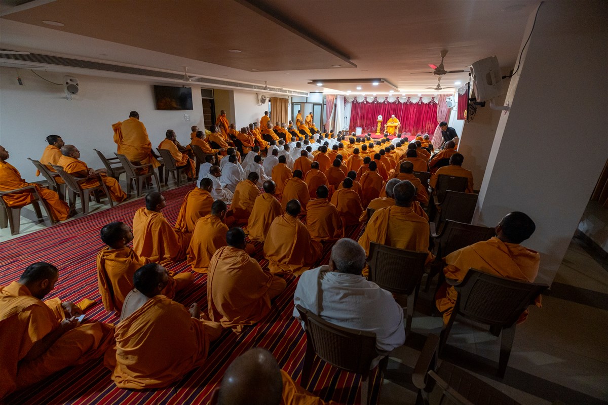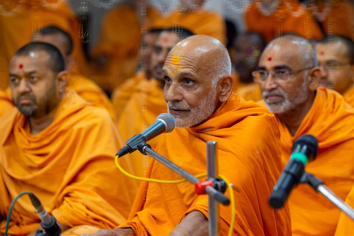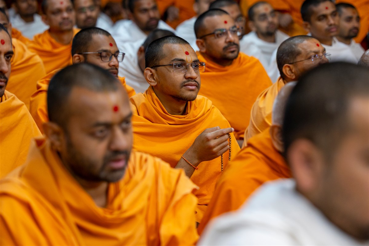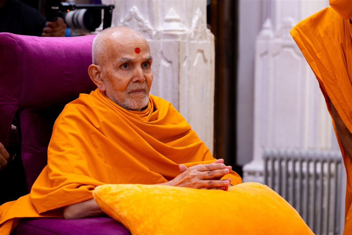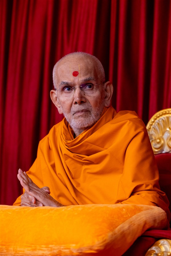 Swamishri listens to the sadhana mantra and daily prayer