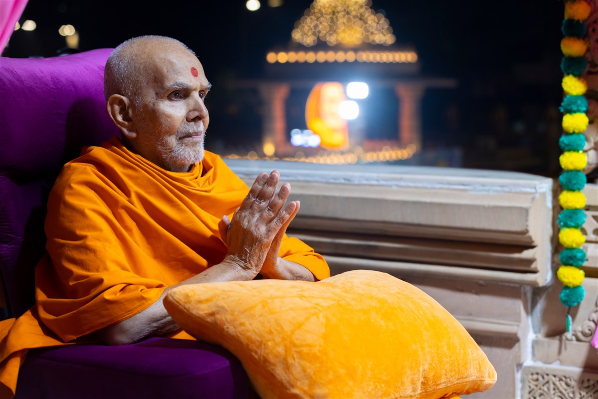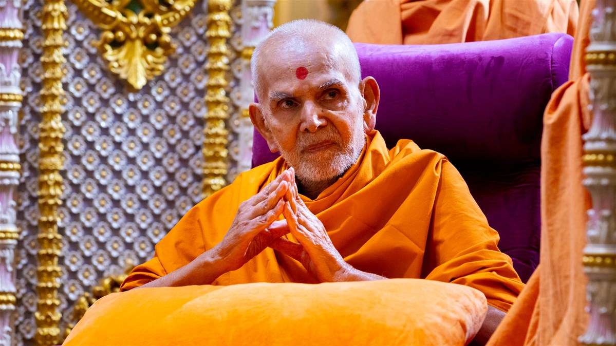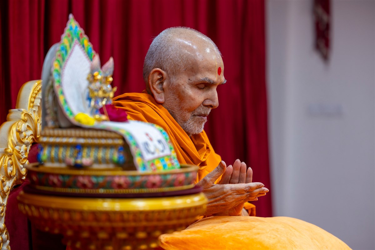 Swamishri greets all with folded hands