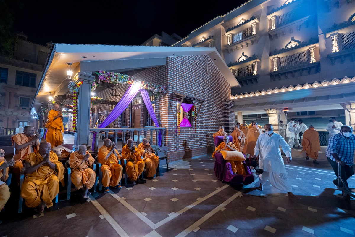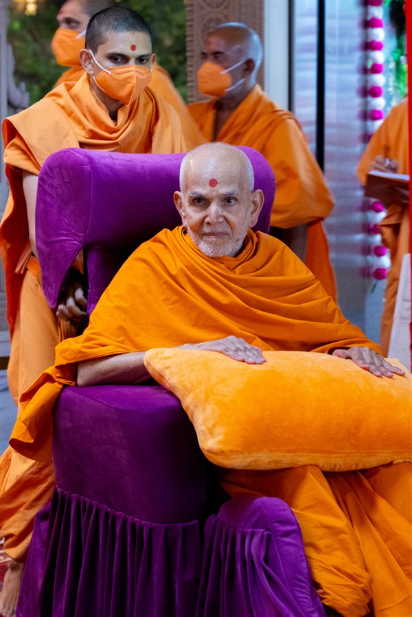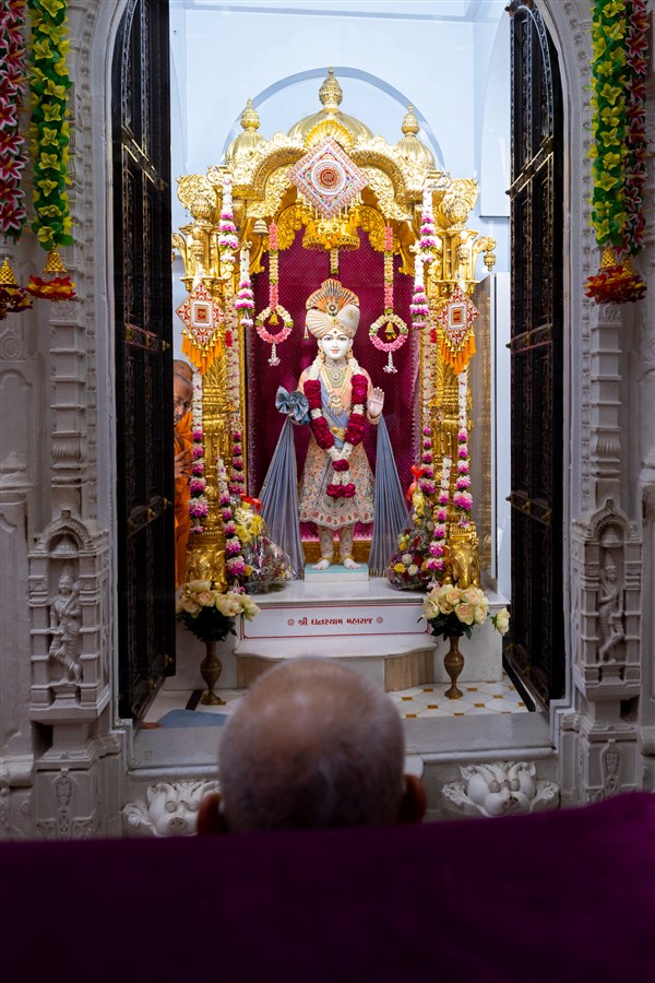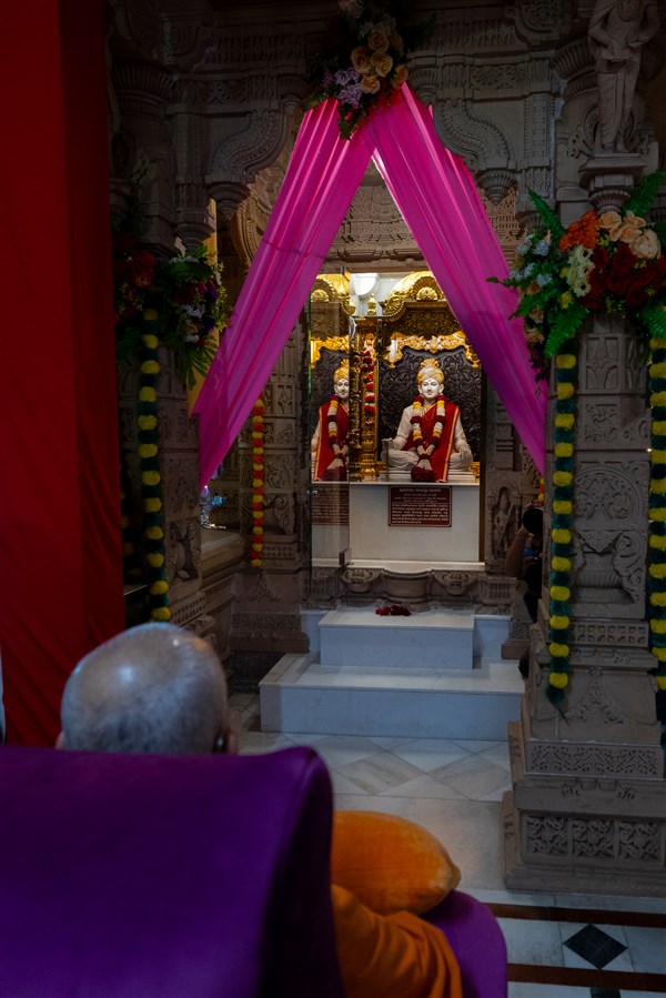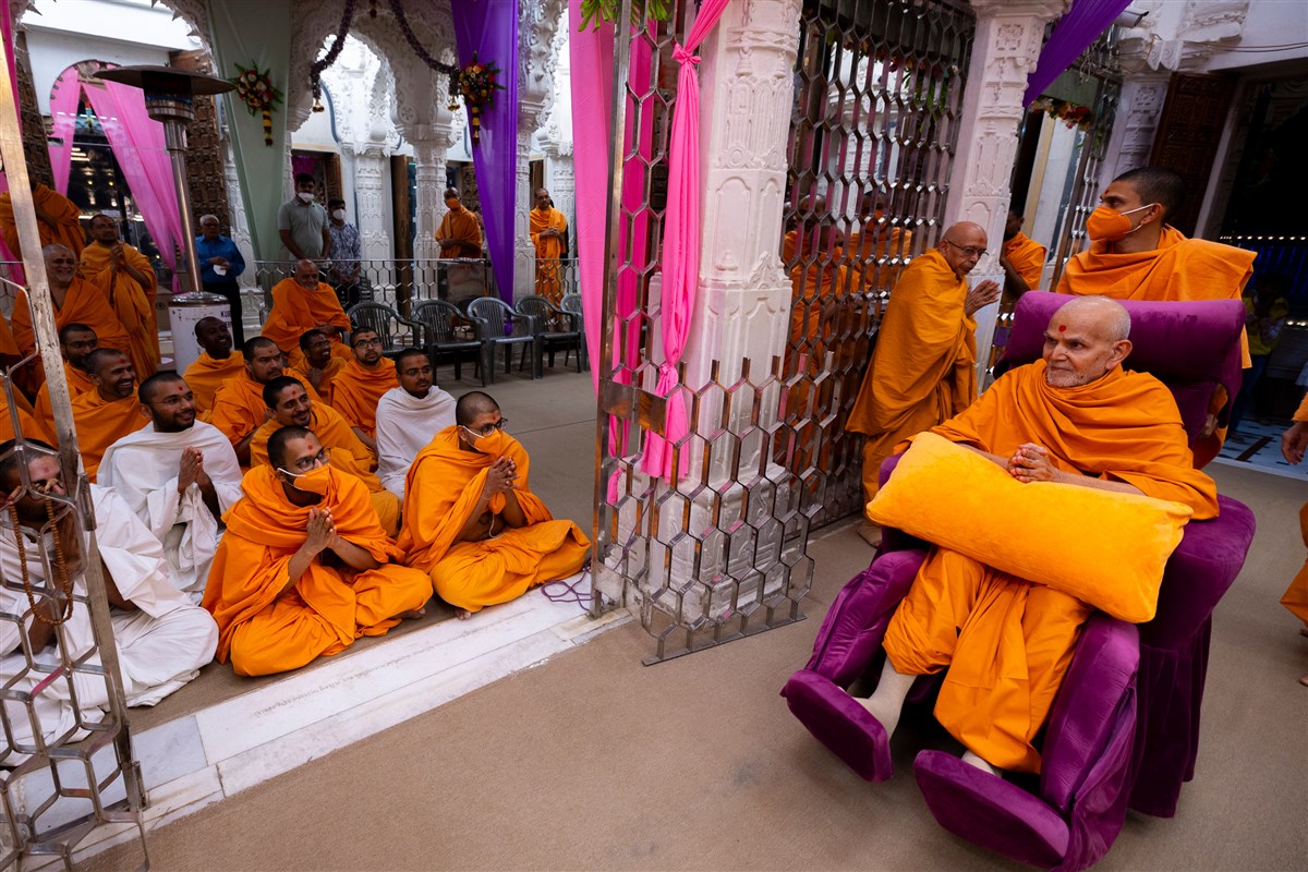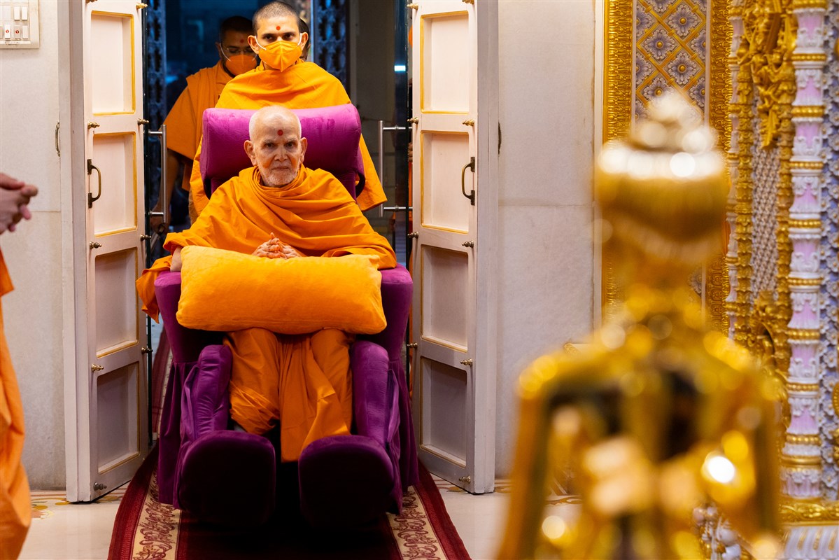 Swamishri arrives for Thakorji's darshan