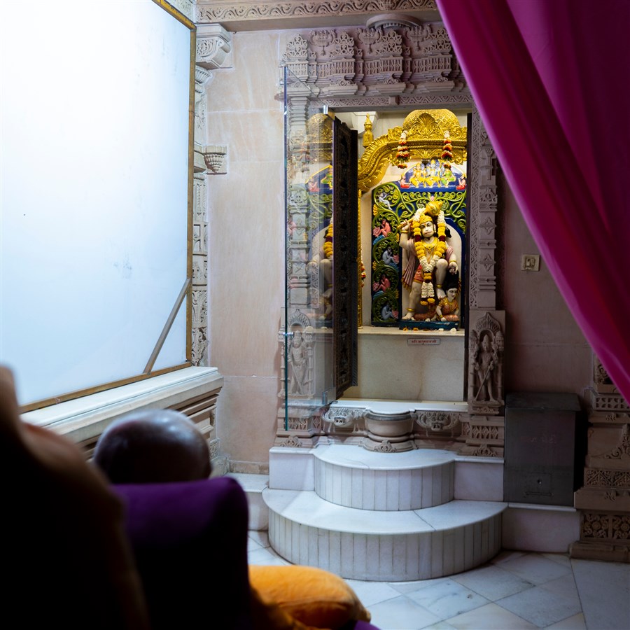 Swamishri engrossed in darshan of Shri Hanumanji