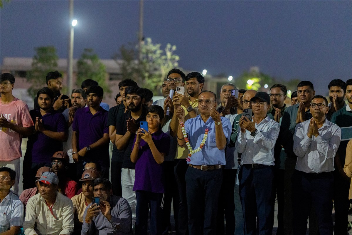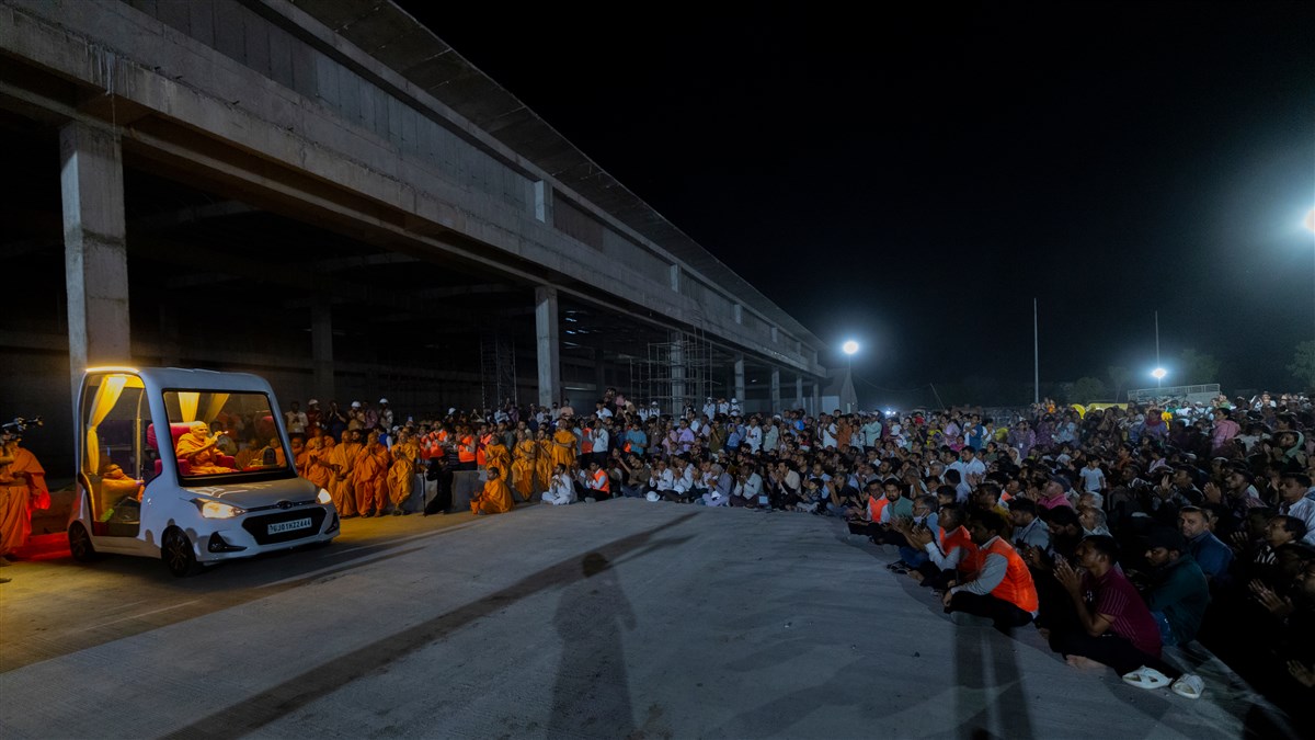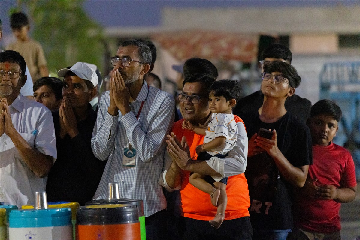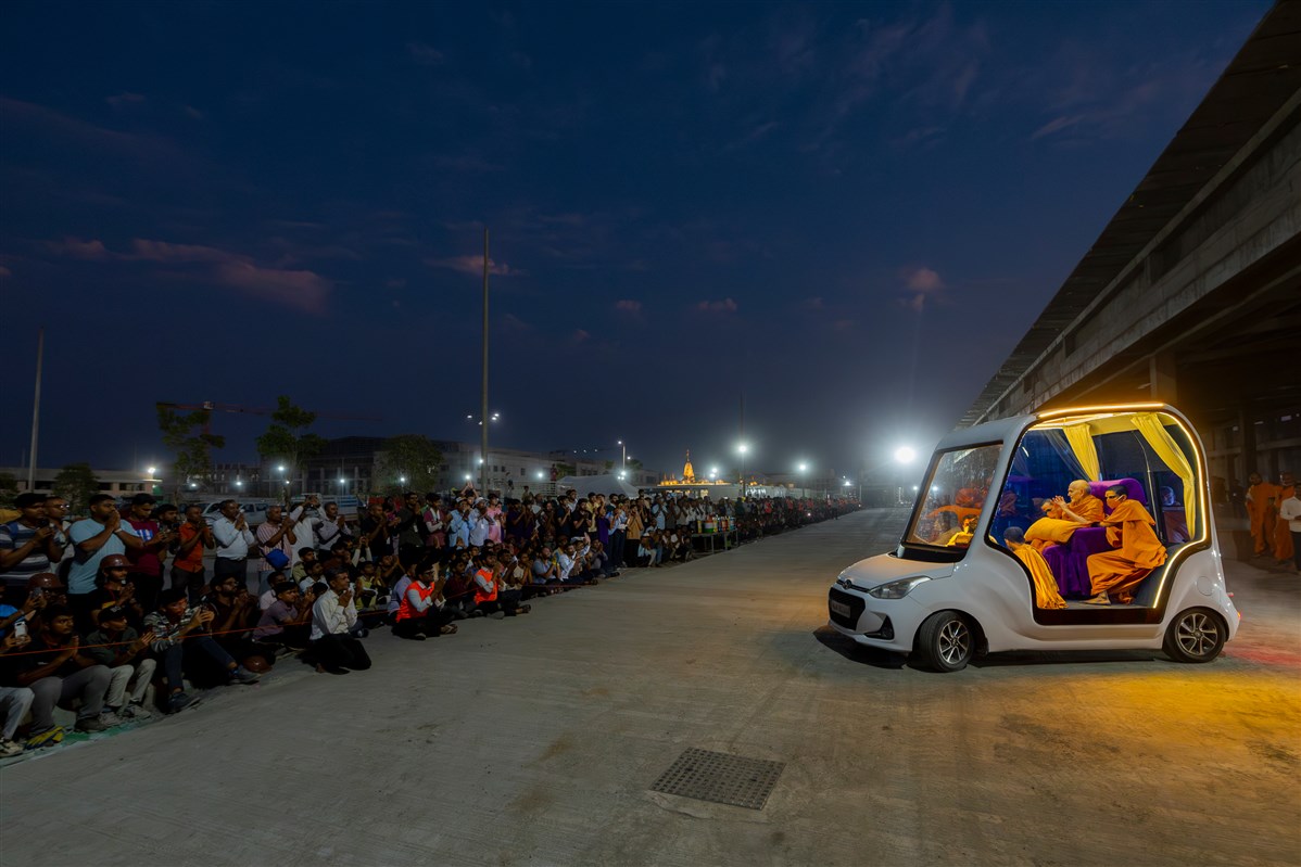BAPS Shri Swaminarayan Prarthana Mandir, Kanad, Surat, Bhagwan Swaminarayan, Aksharbrahma Gunatitanand Swami Maharaj and Pragat Brahmaswarup Mahant Swami Maharaj