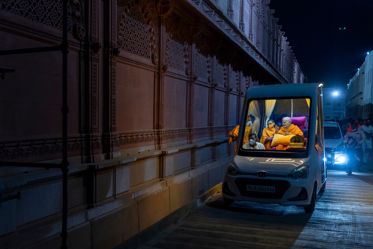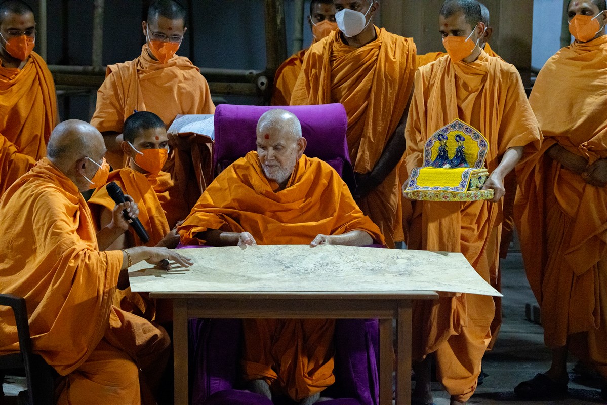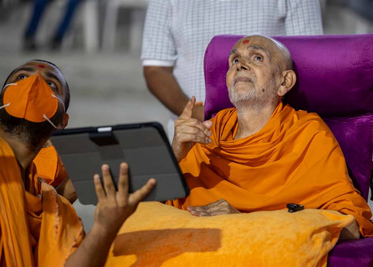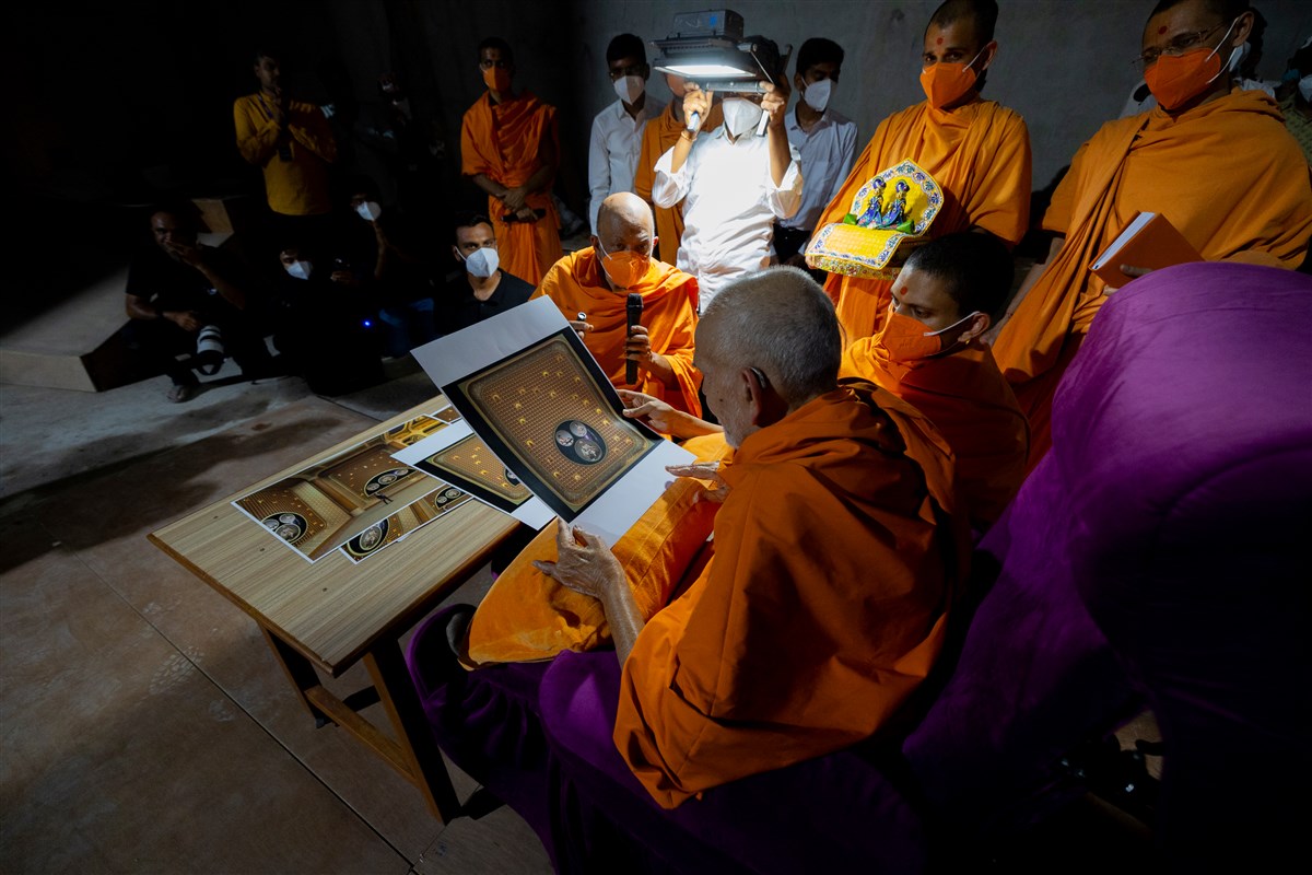 Swamishri engrossed in darshan of Shri Harikrishna Maharaj and Shri Gunatitanand Swami Maharaj