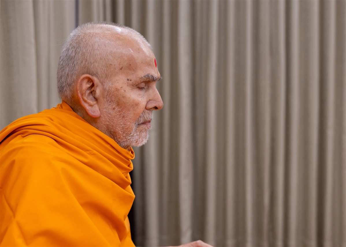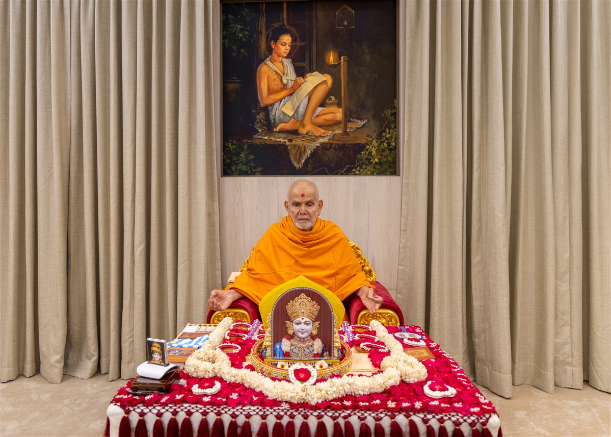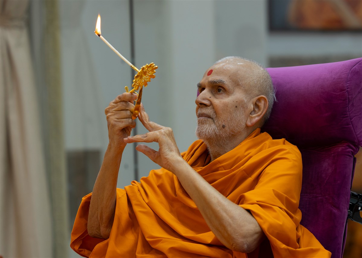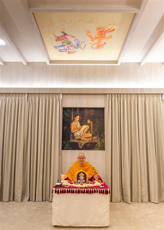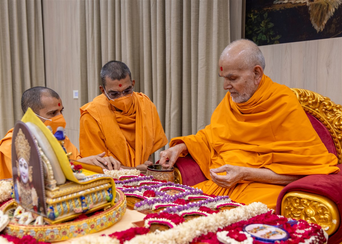 Param Pujya Mahant Swami Maharaj performs his daily puja