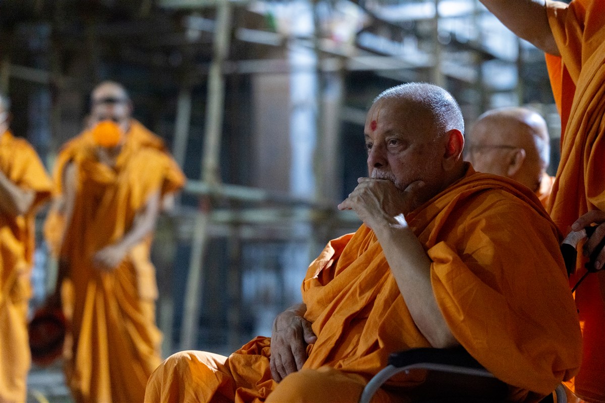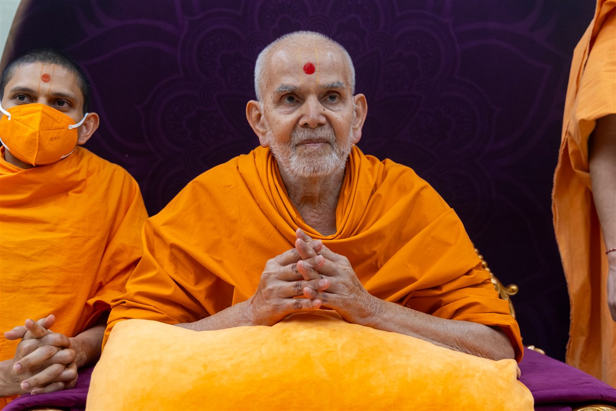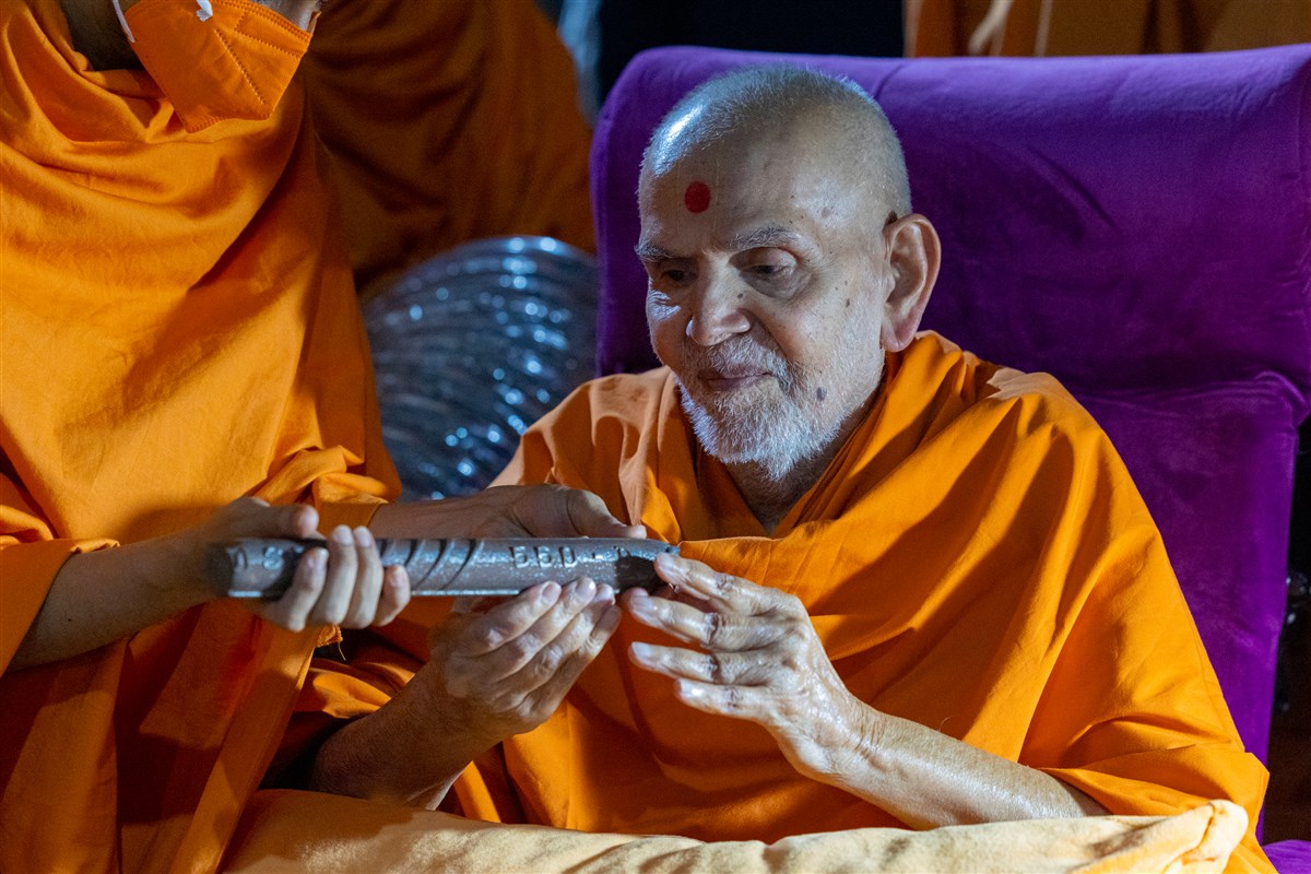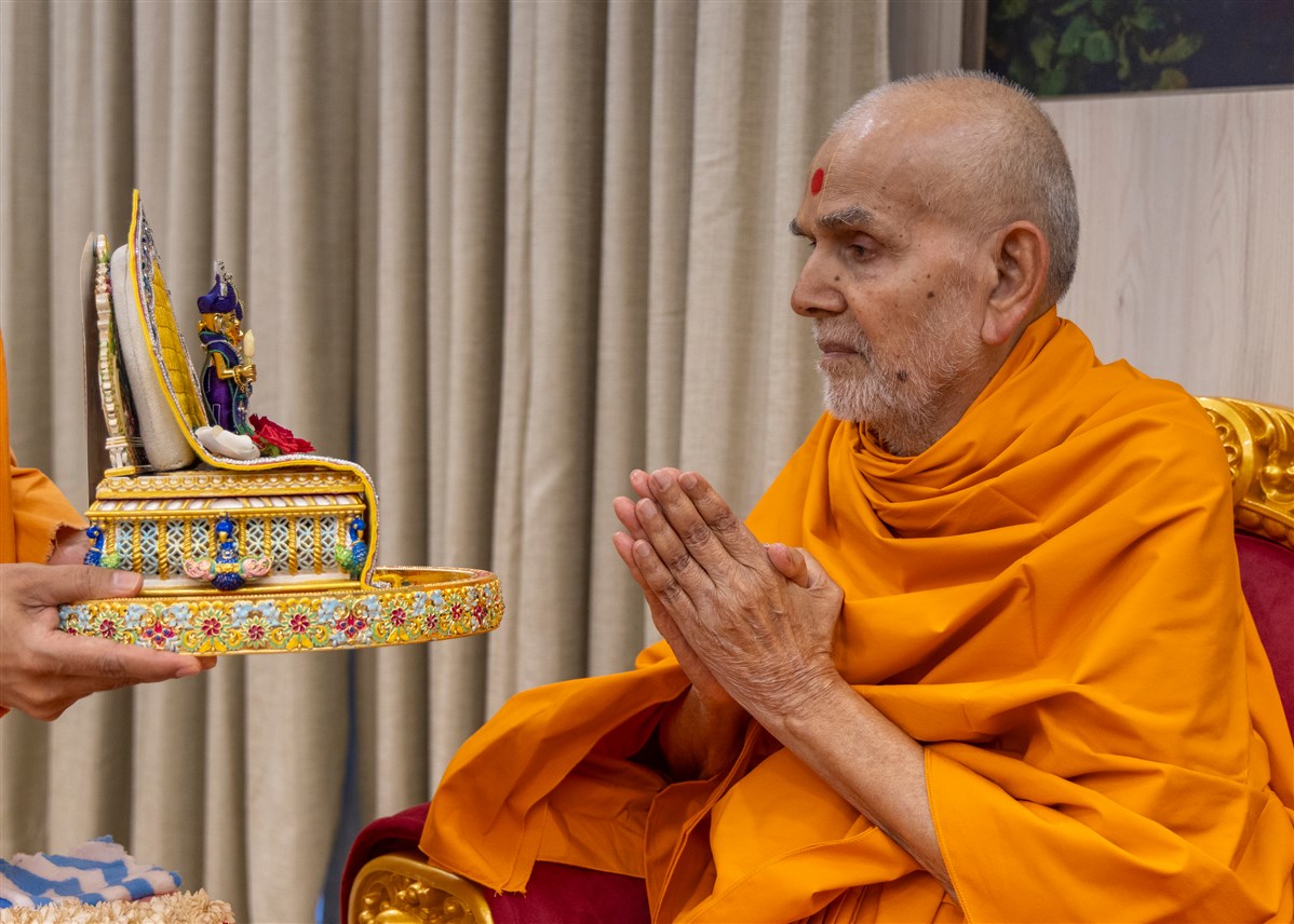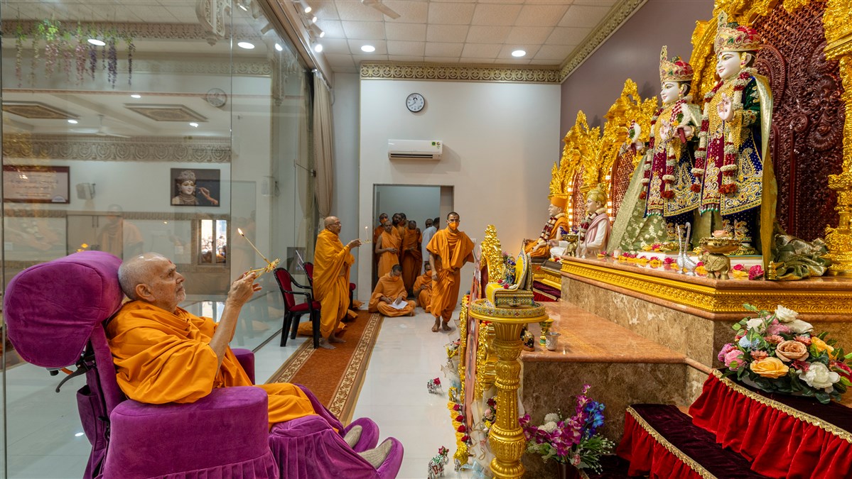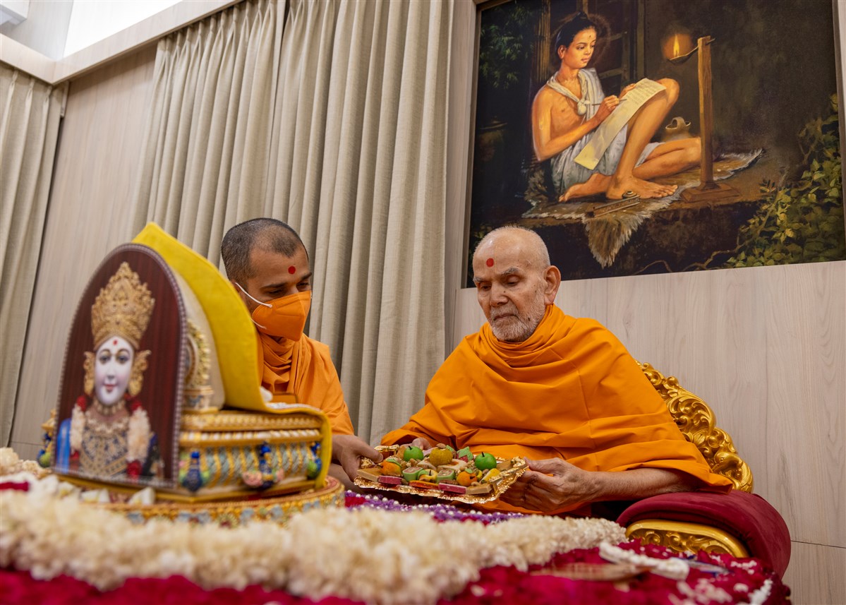 Param Pujya Mahant Swami Maharaj performs his daily puja