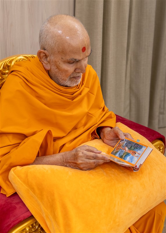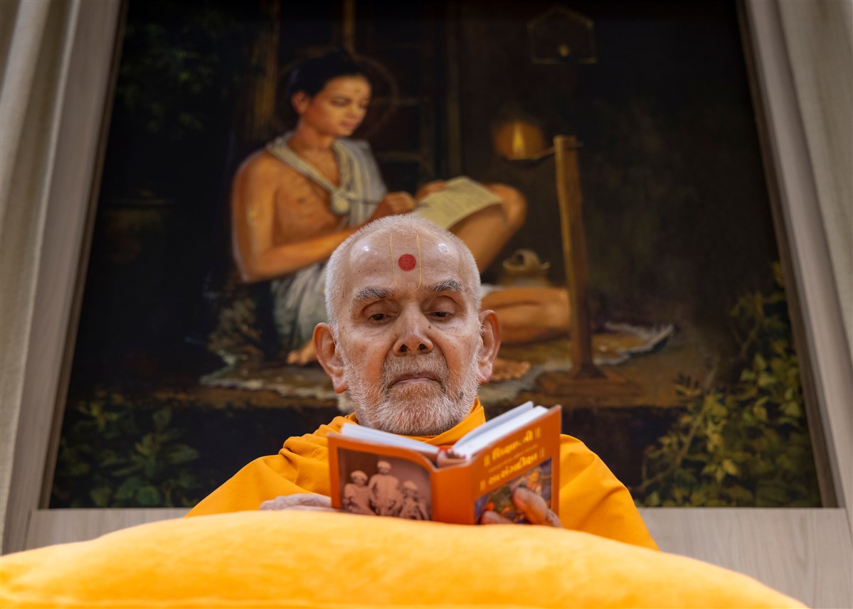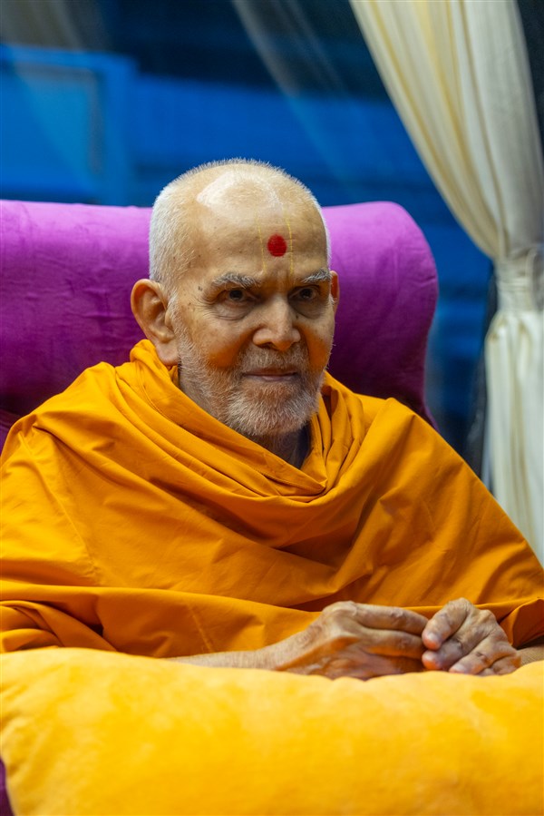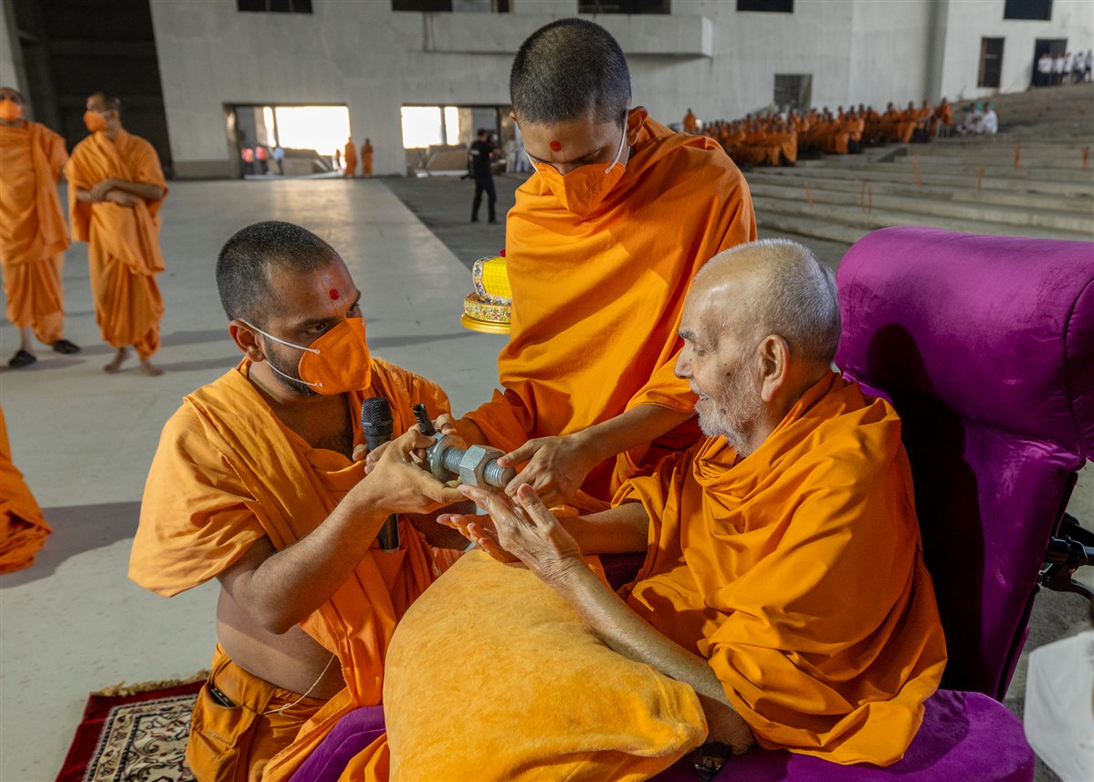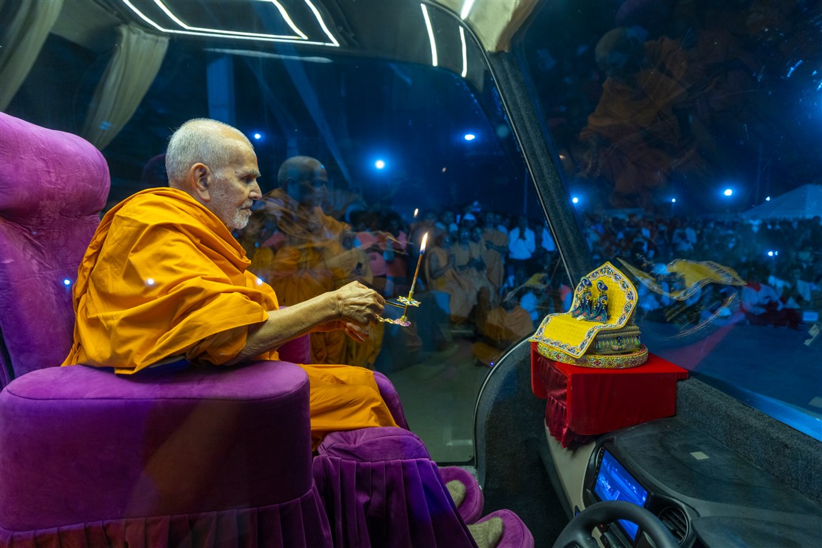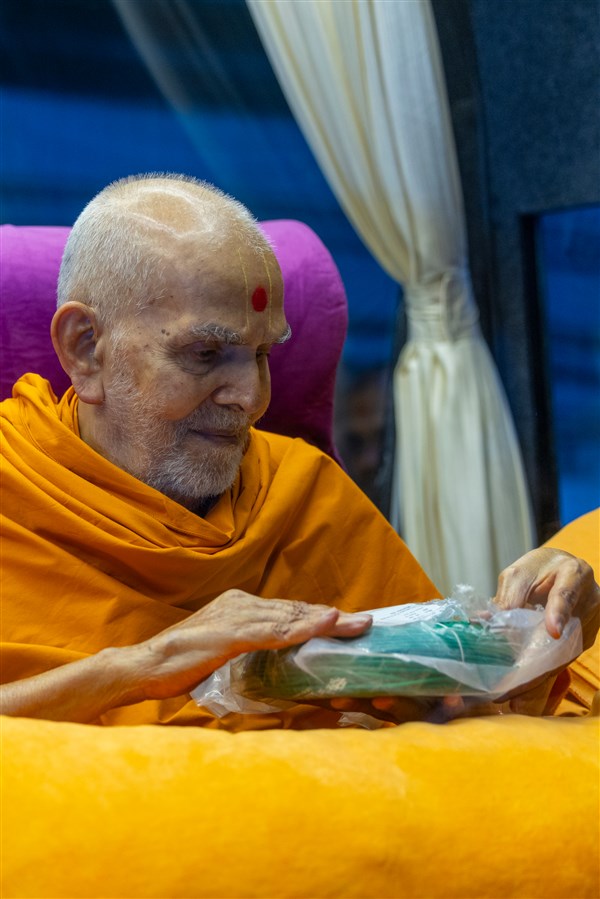 Param Pujya Mahant Swami Maharaj performs his daily puja