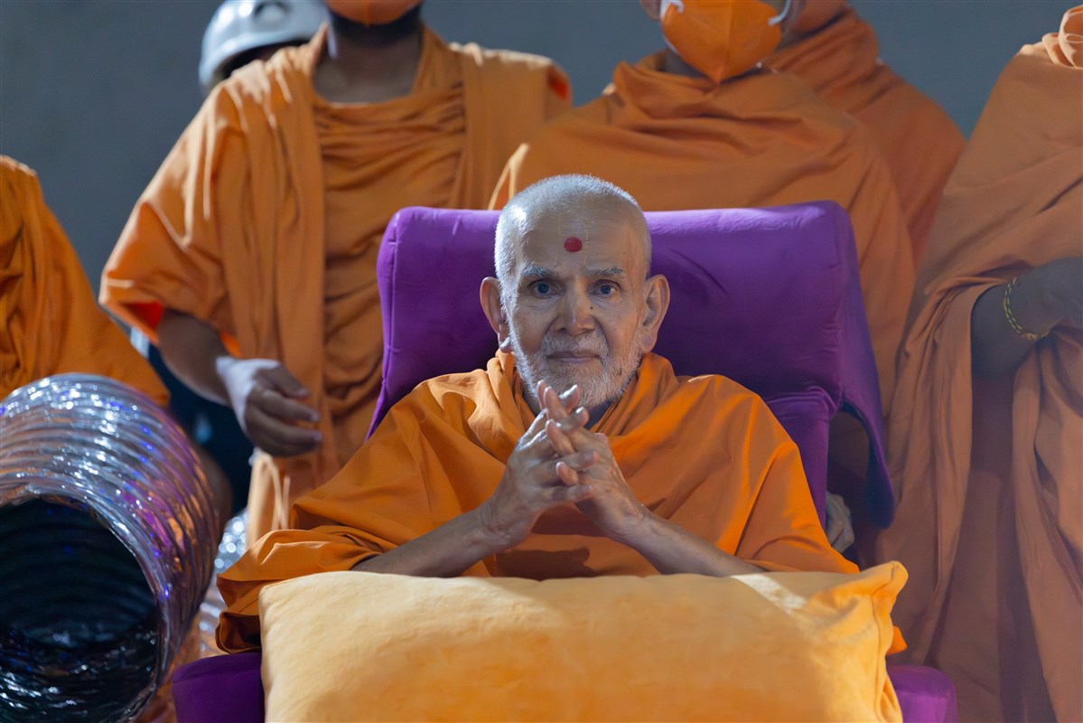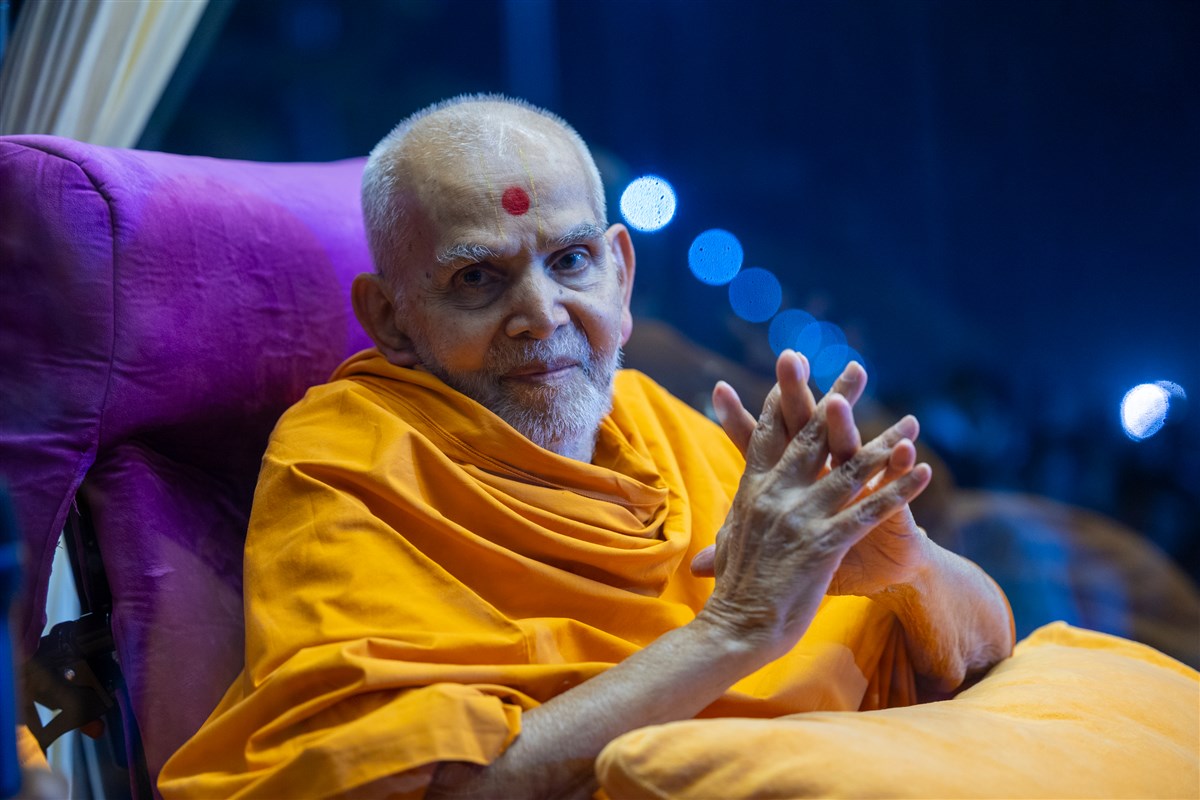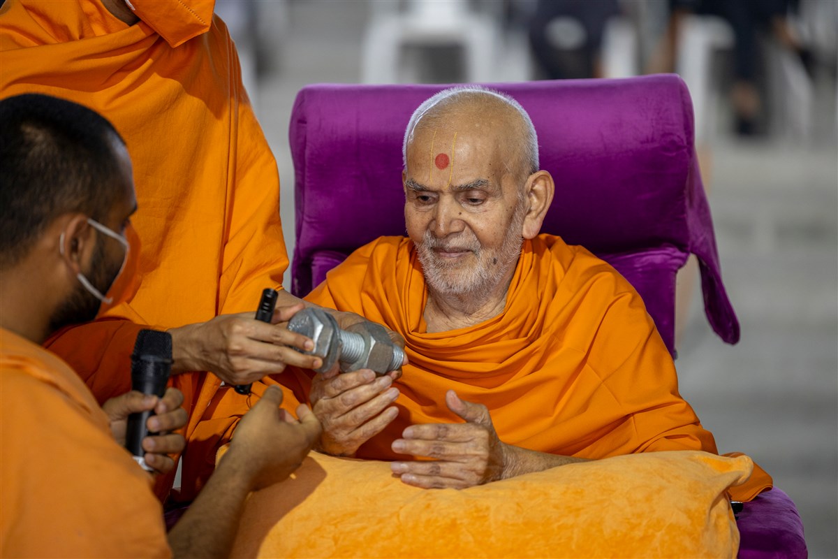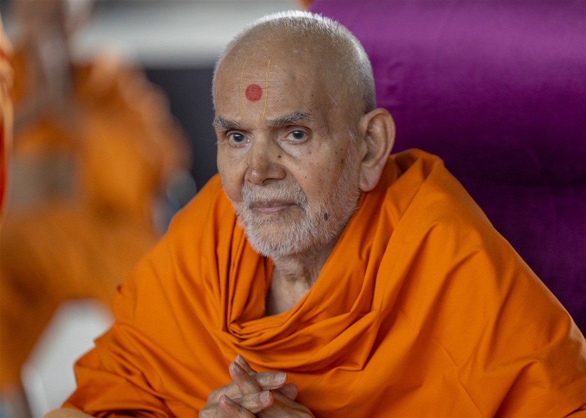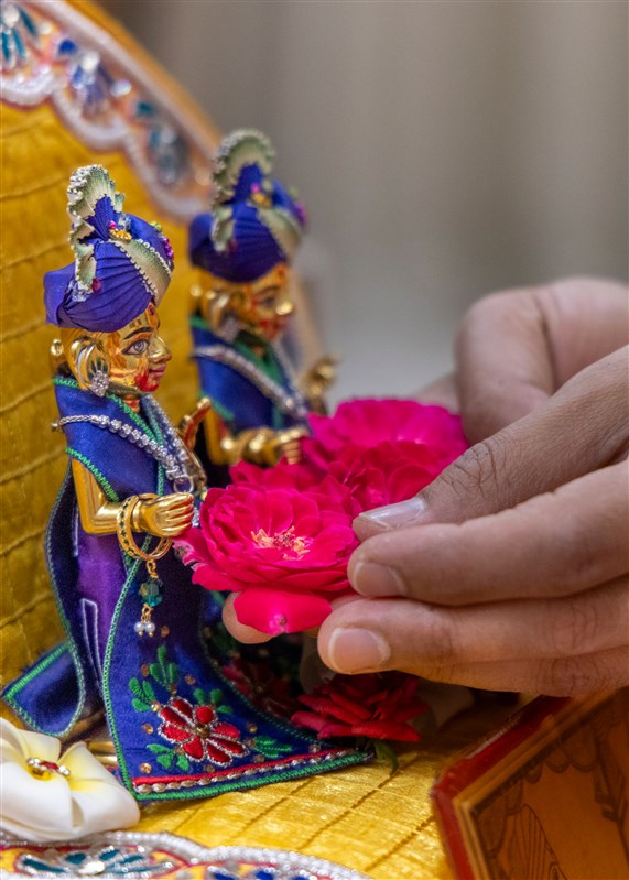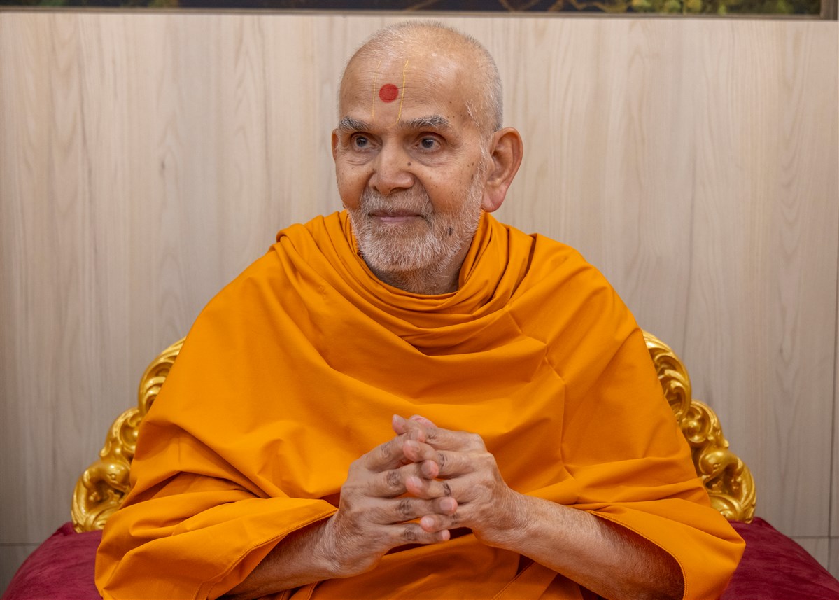 Param Pujya Mahant Swami Maharaj performs his daily puja