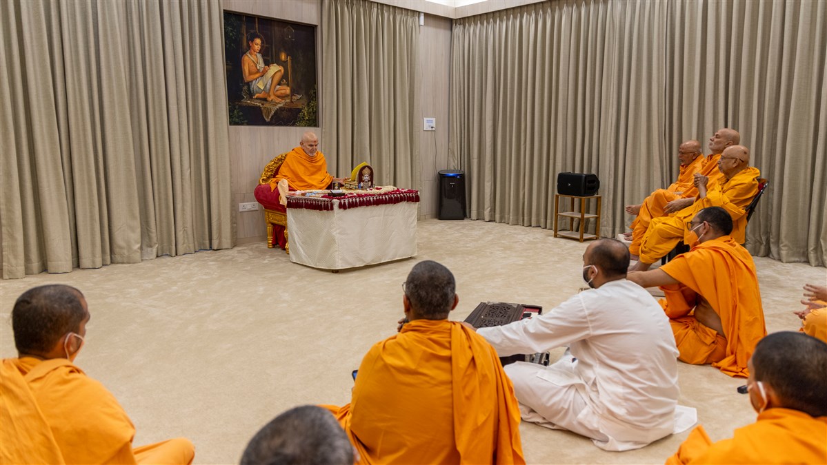 Pujya Tyagvallabh Swami sings a kirtan in Swamishri's daily puja
