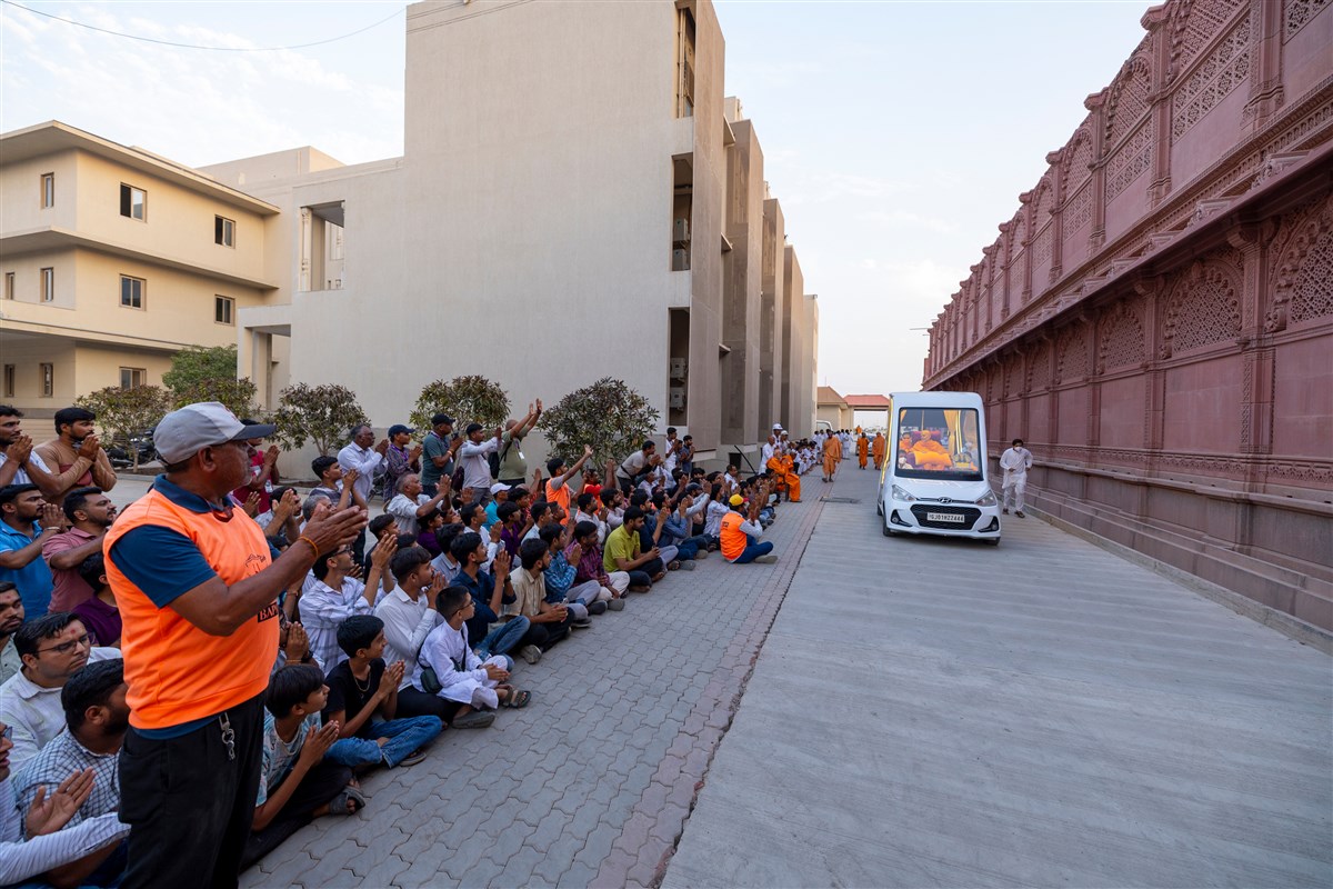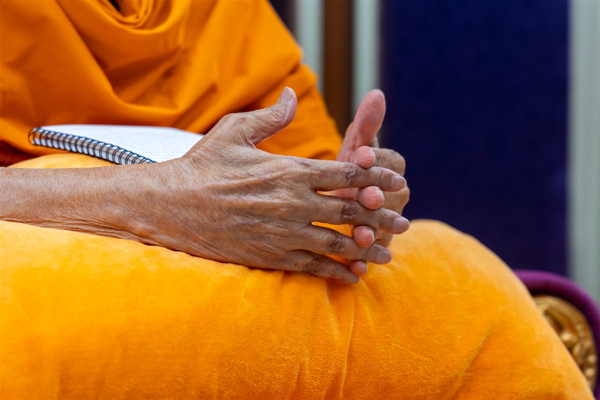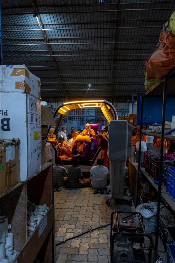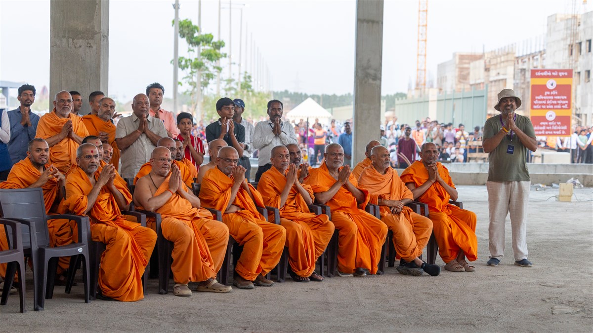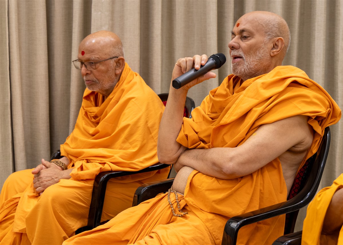 Pujya Ghanshyamcharan Swami greets Swamishri