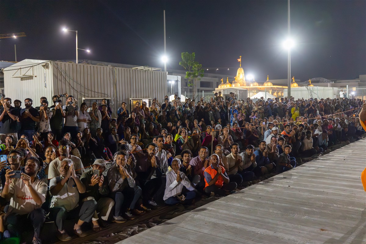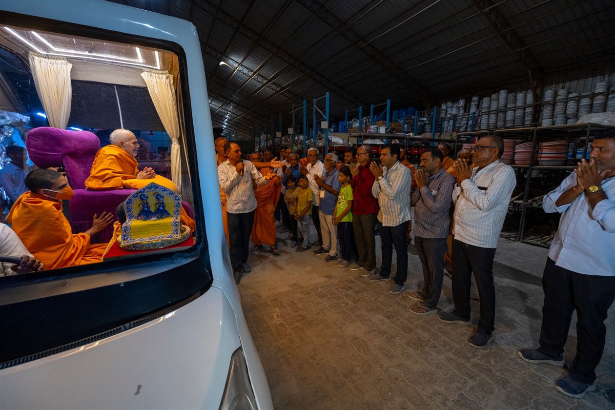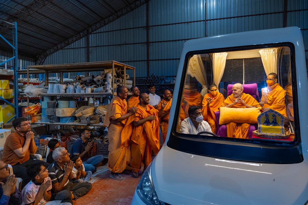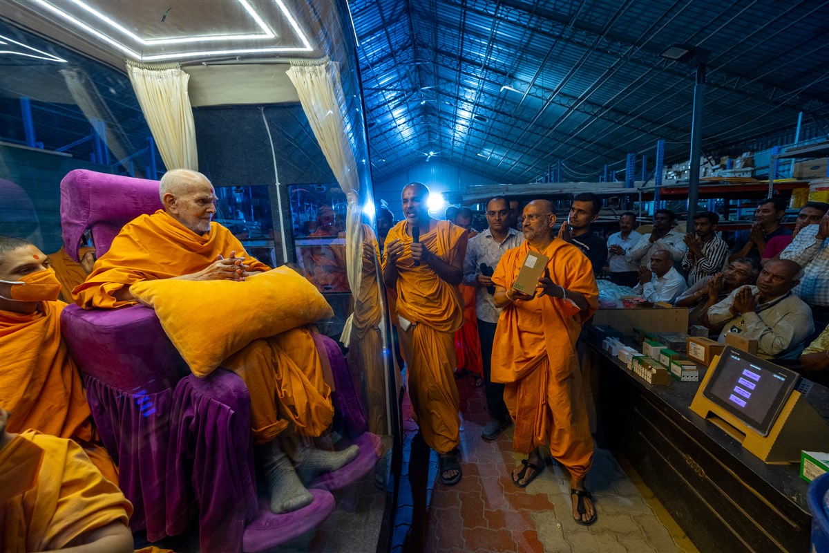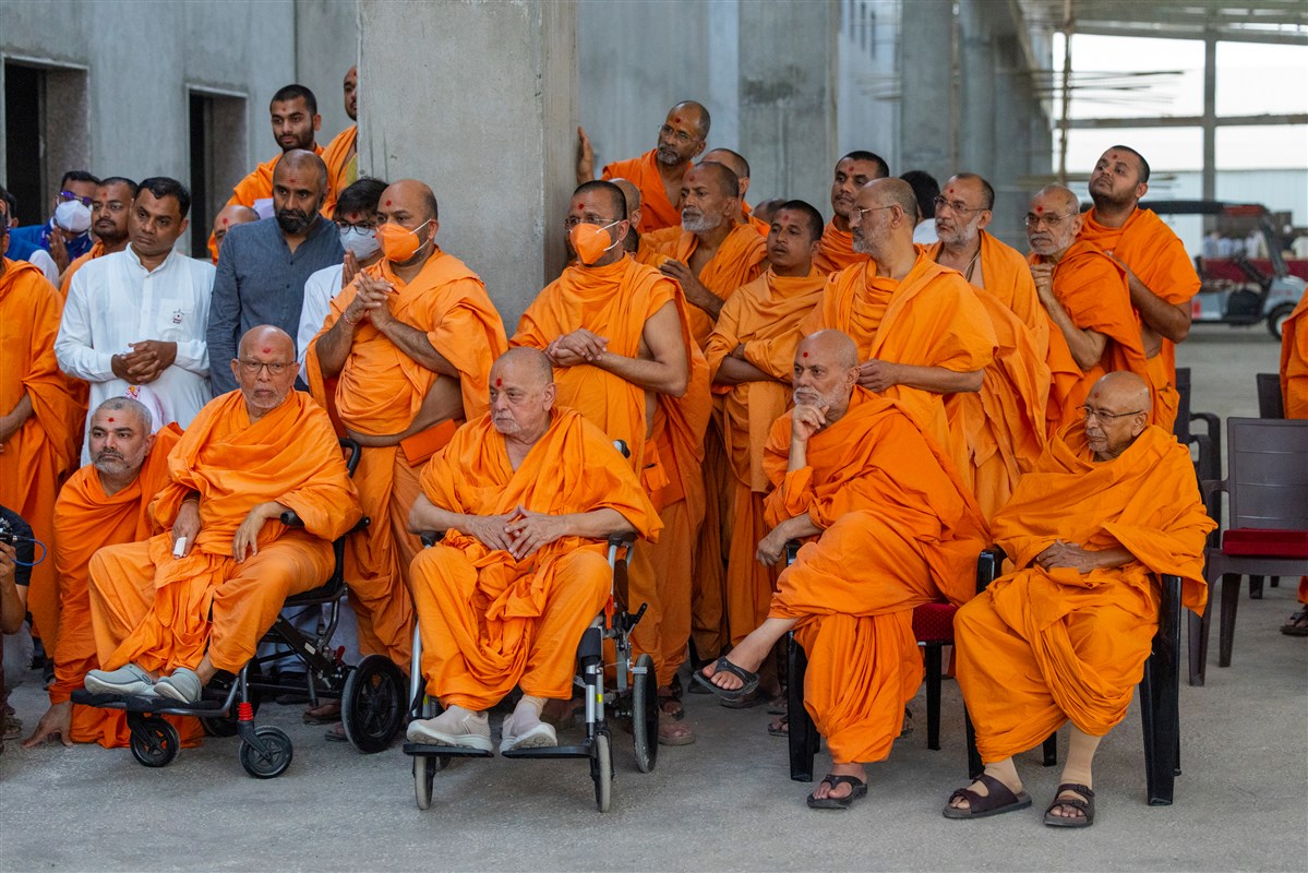 Pujya Ghanshyamcharan Swami greets Swamishri
