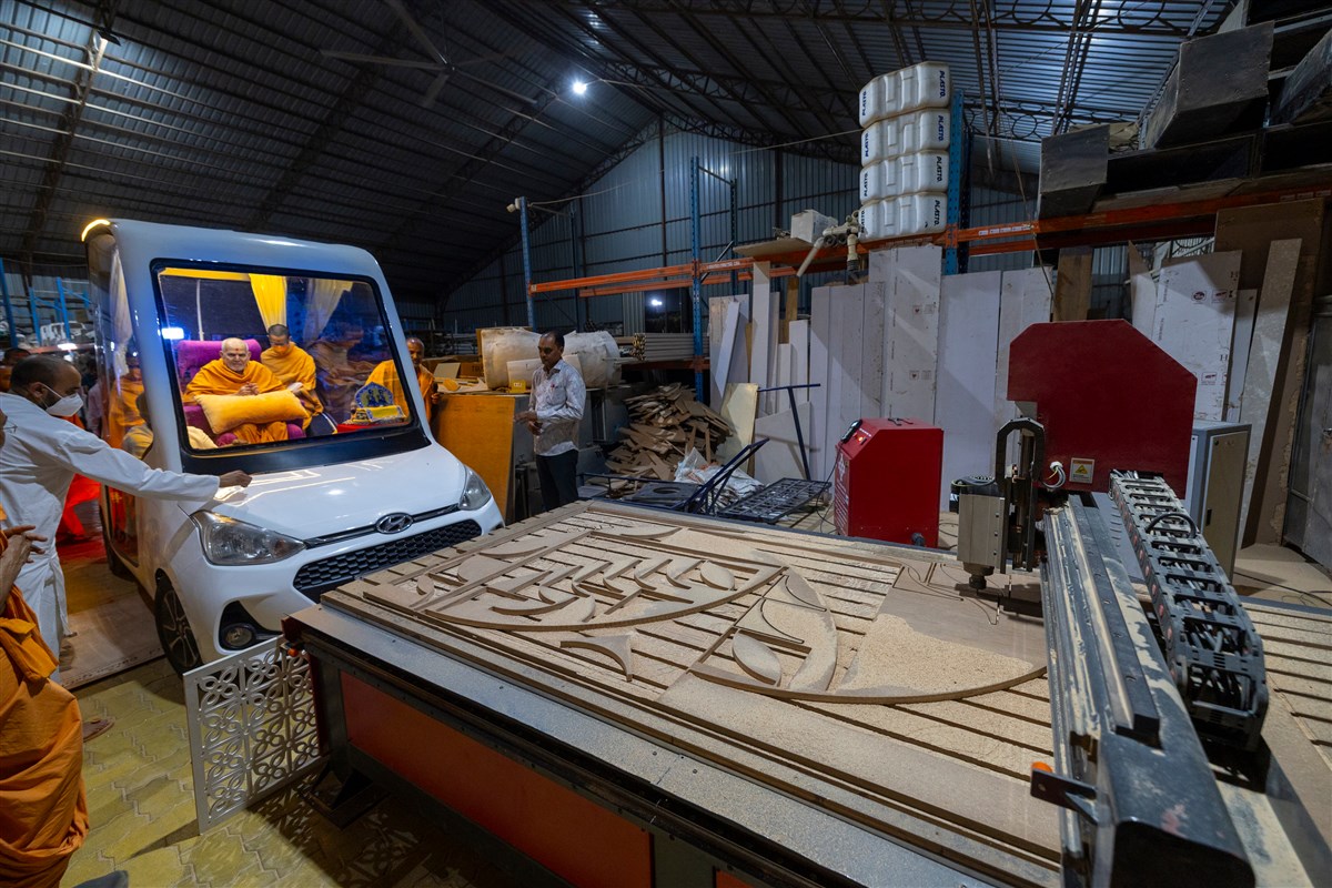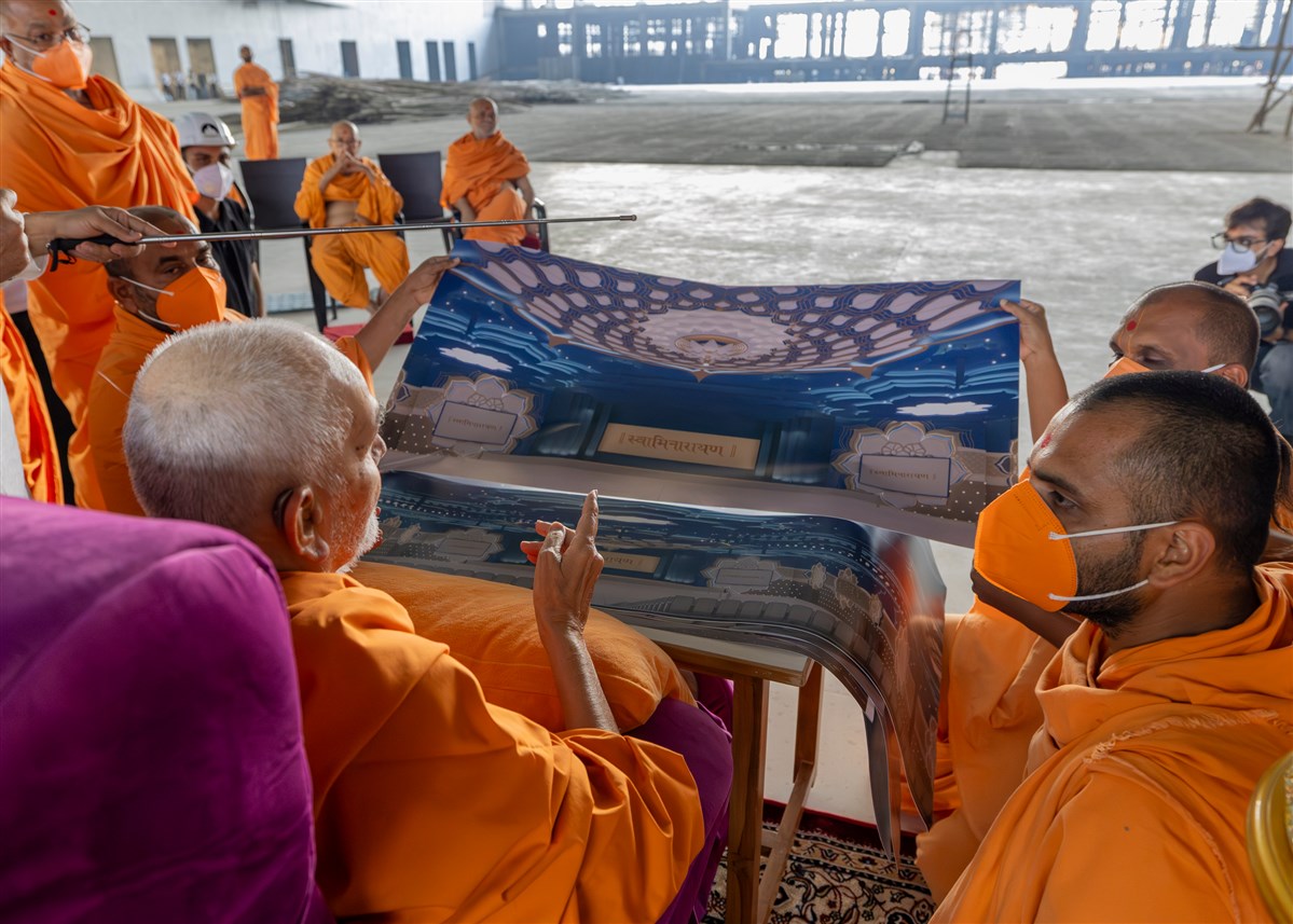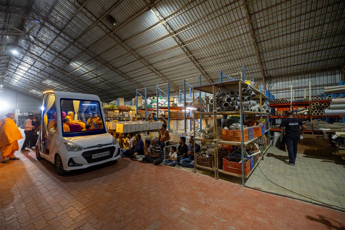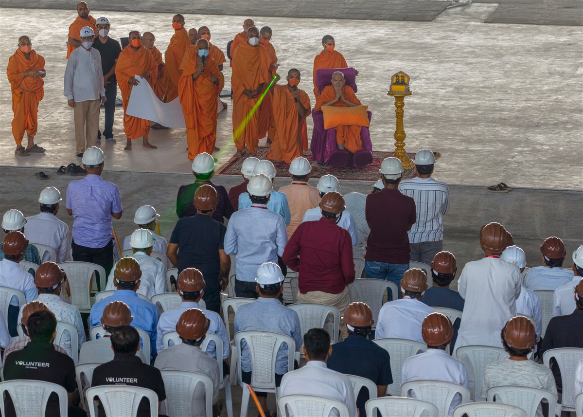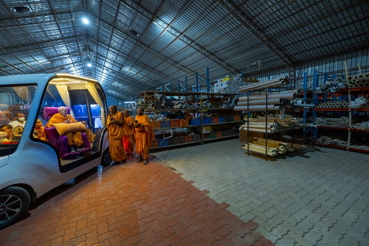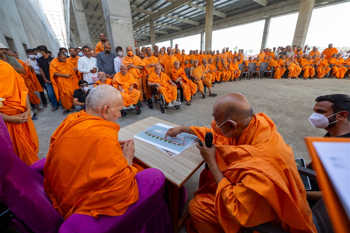Pujya Ishwarcharan Swami at the under-construction Visitors' Centre