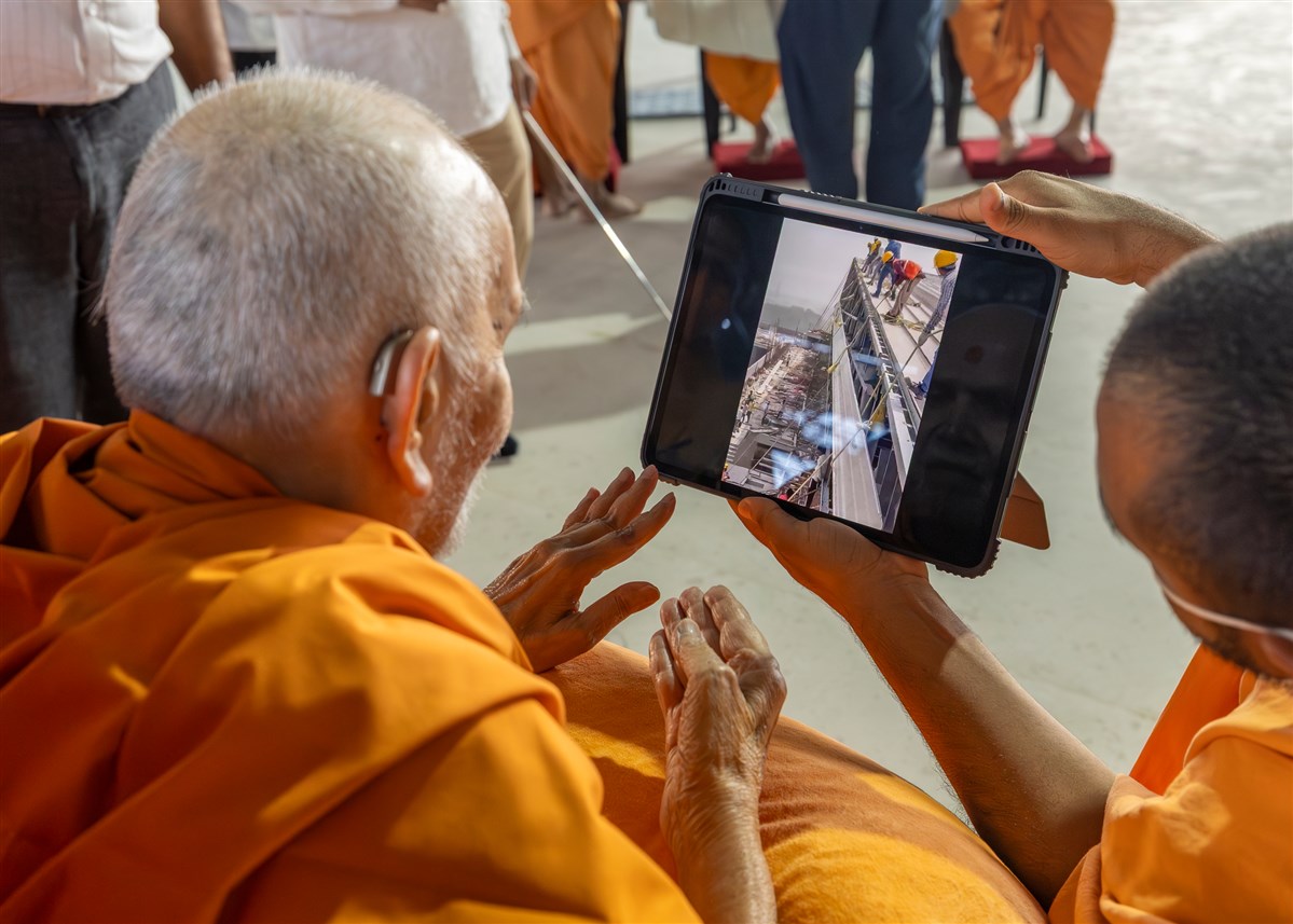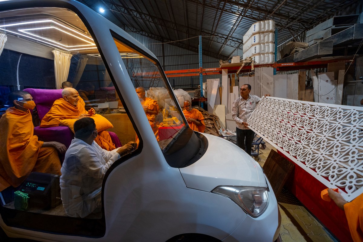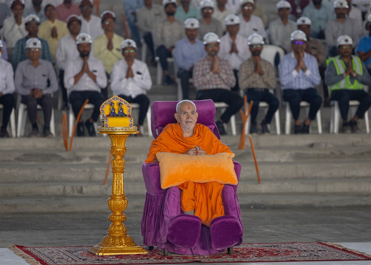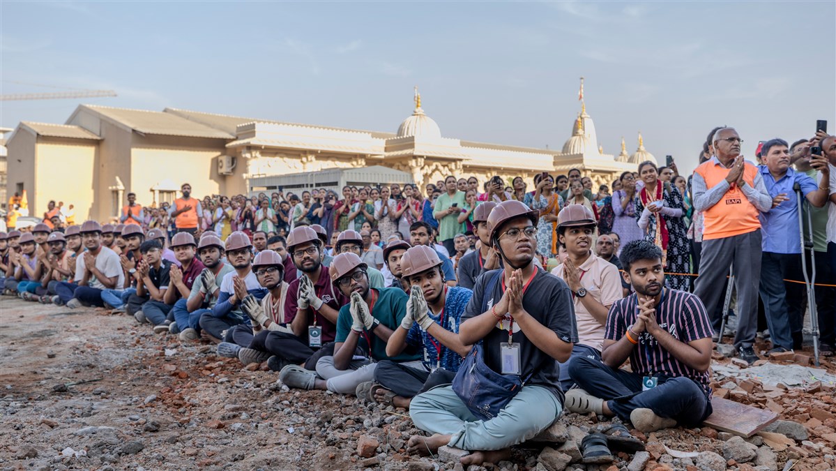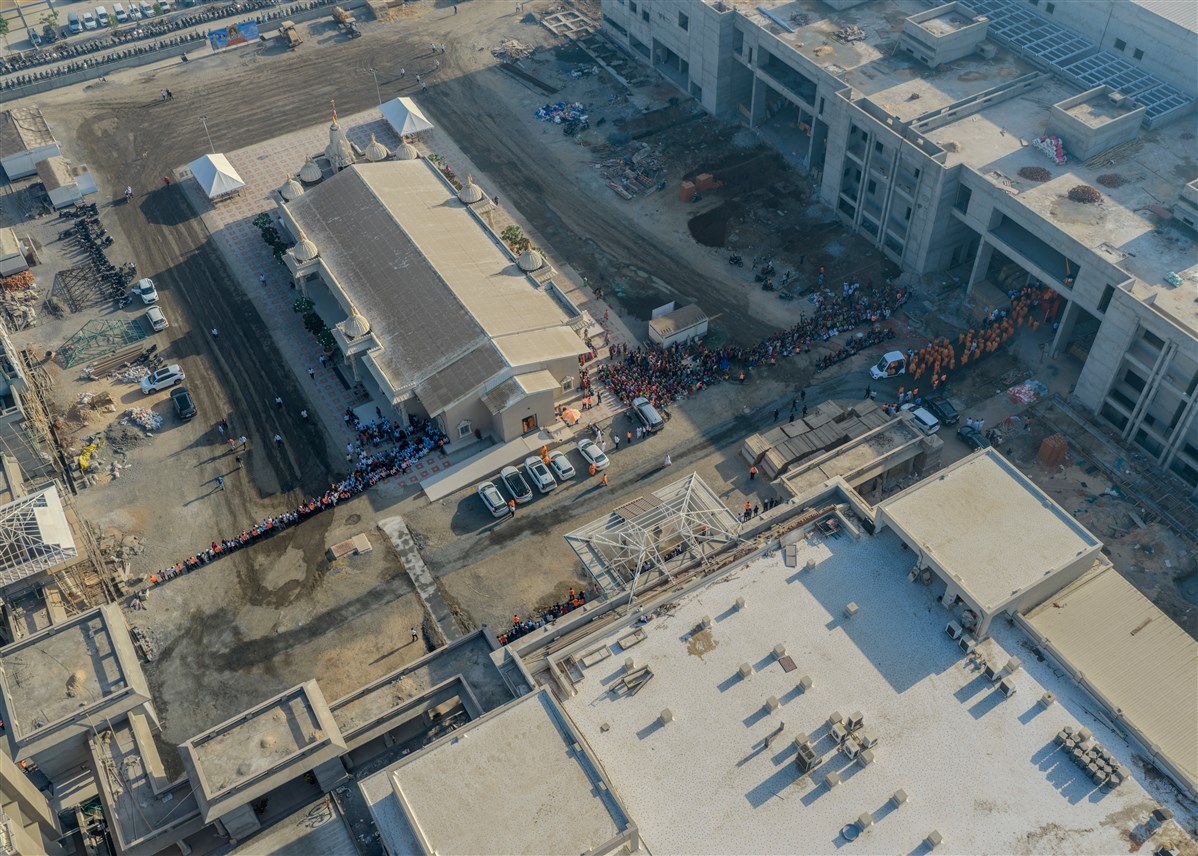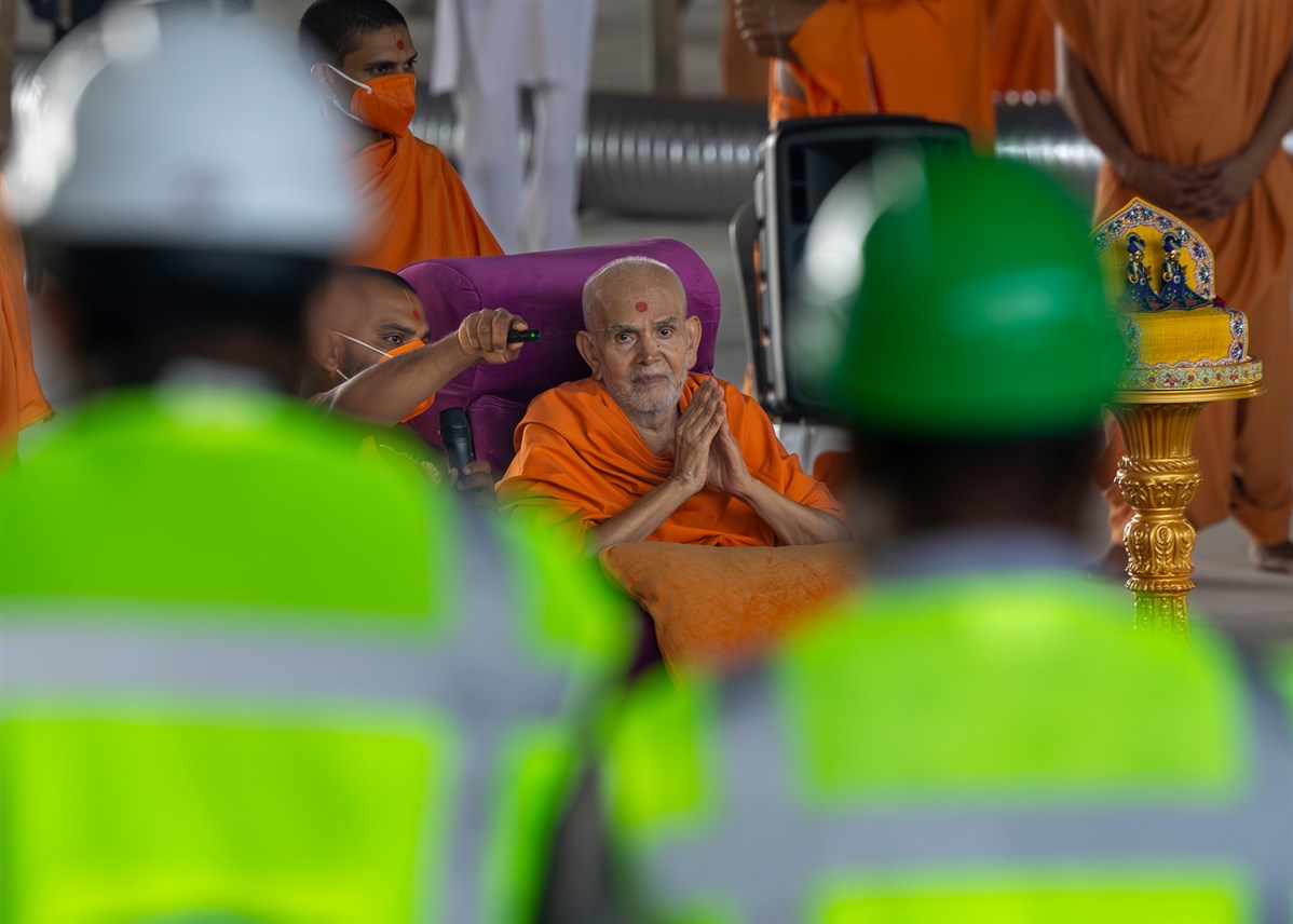 Pujya Ishwarcharan Swami at the under-construction Visitors' Centre