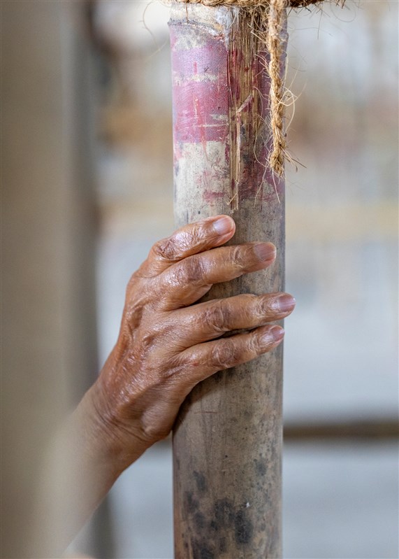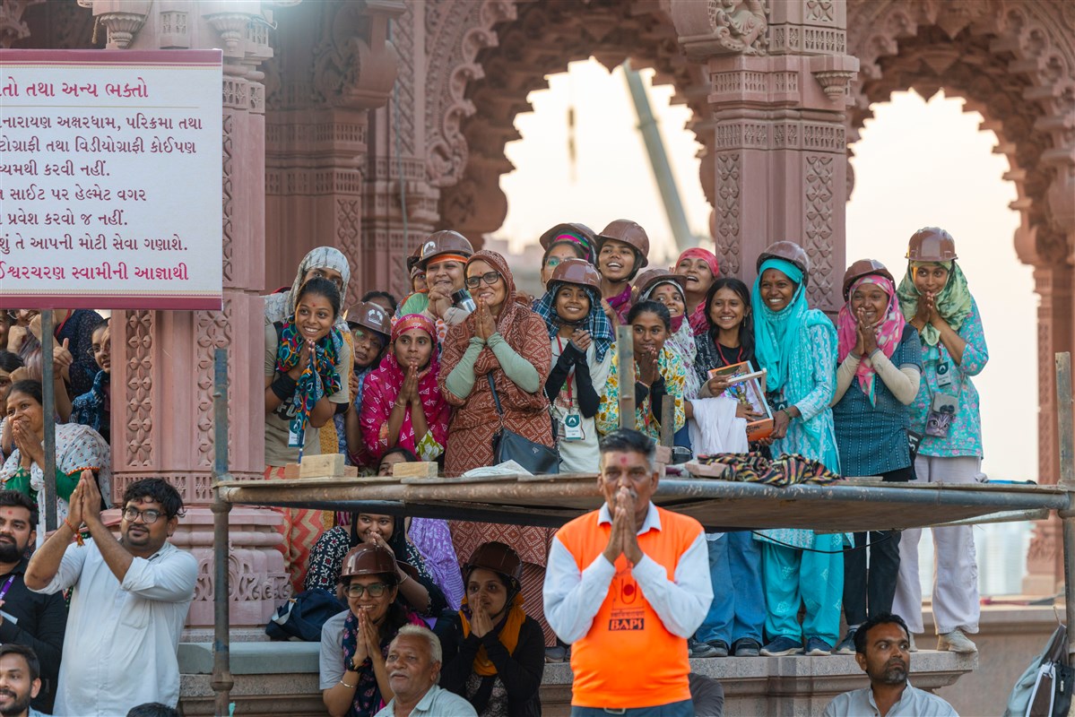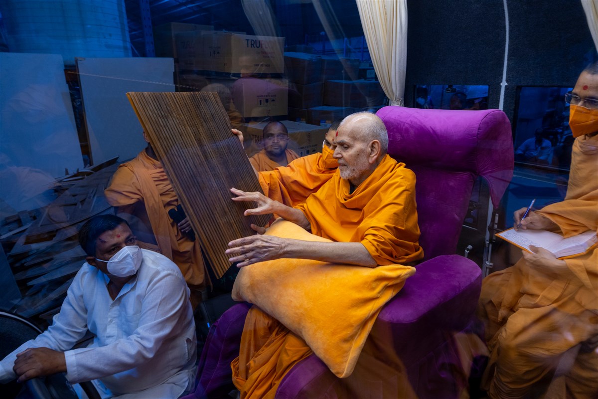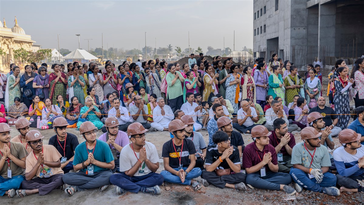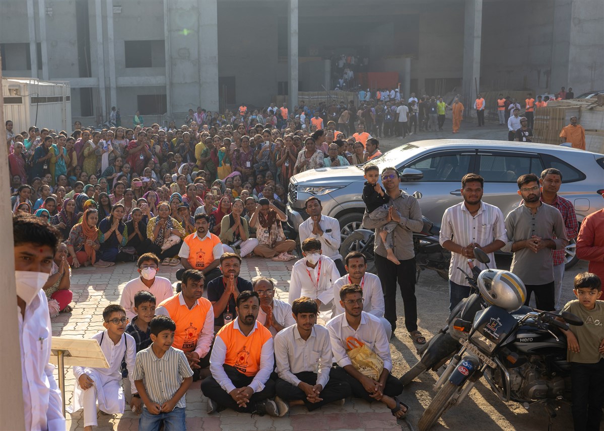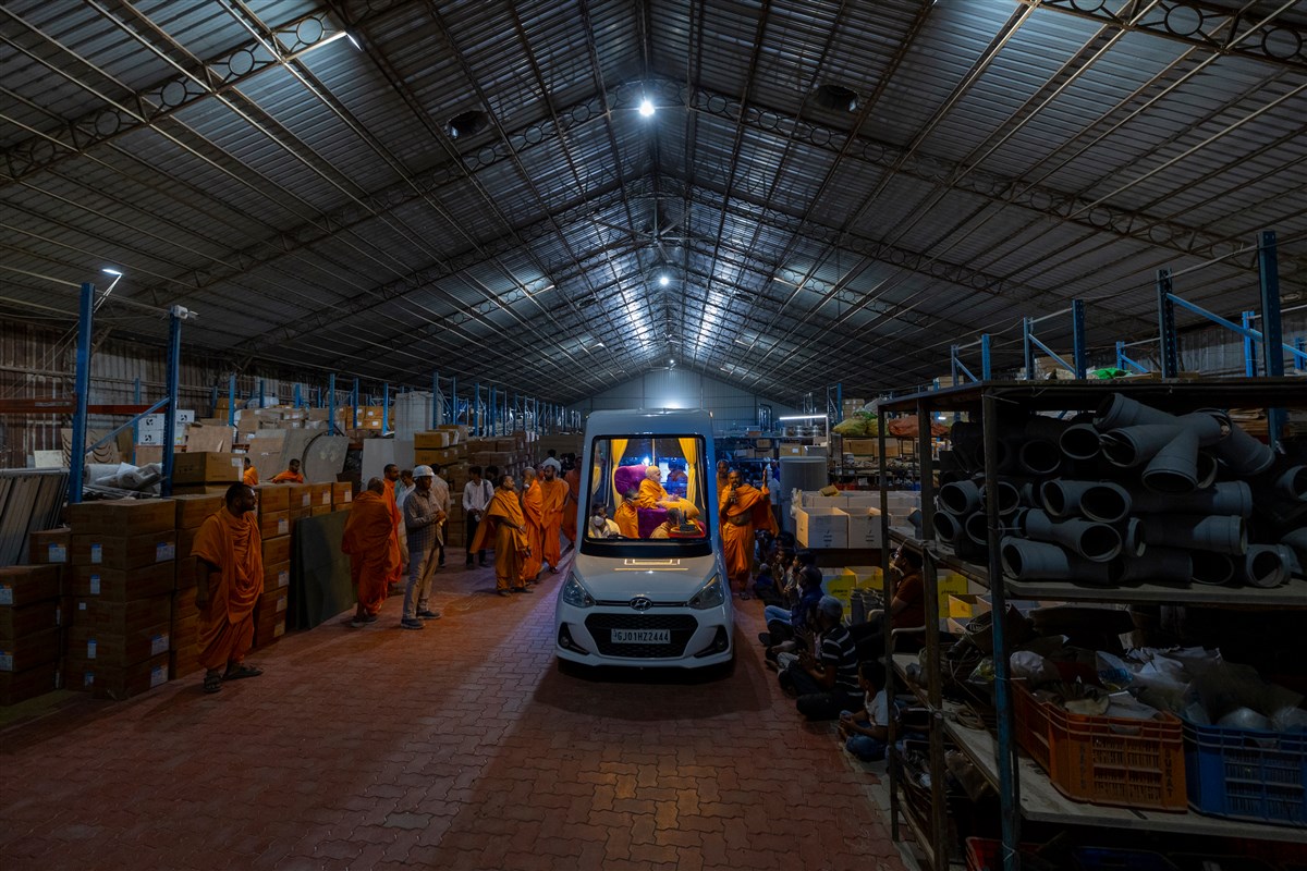 Pujya Ishwarcharan Swami at the under-construction Visitors' Centre
