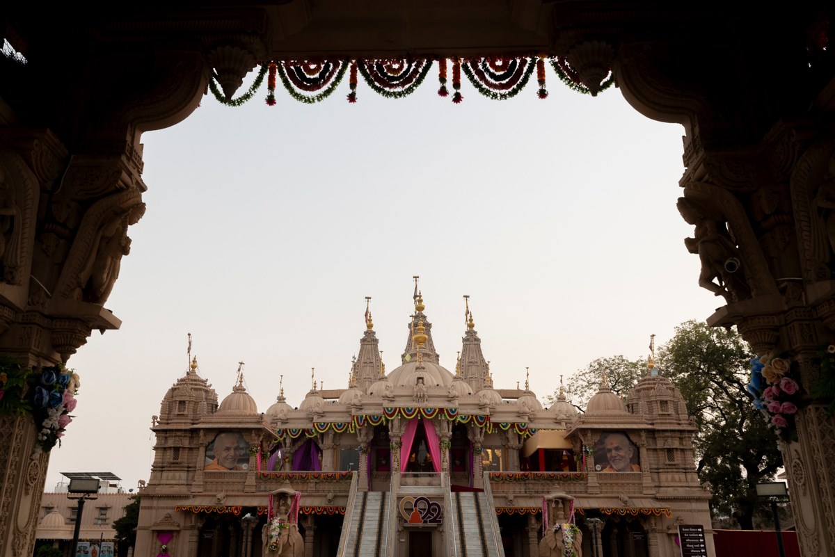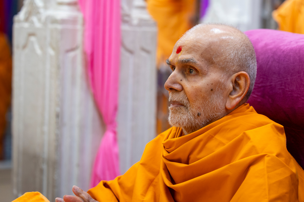 Swamishri after the darshan of Shri Harikrishna Maharaj and Shri Lakshmi-Narayan Bhagwan