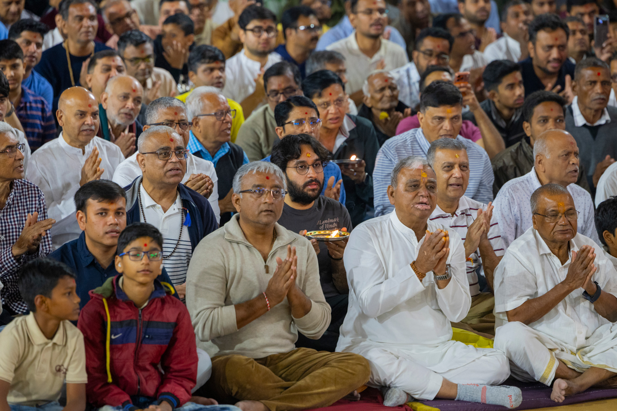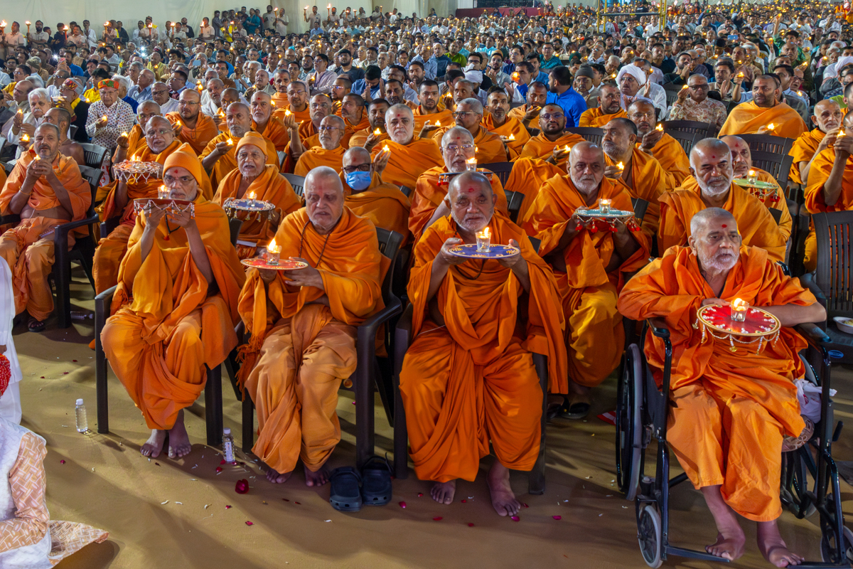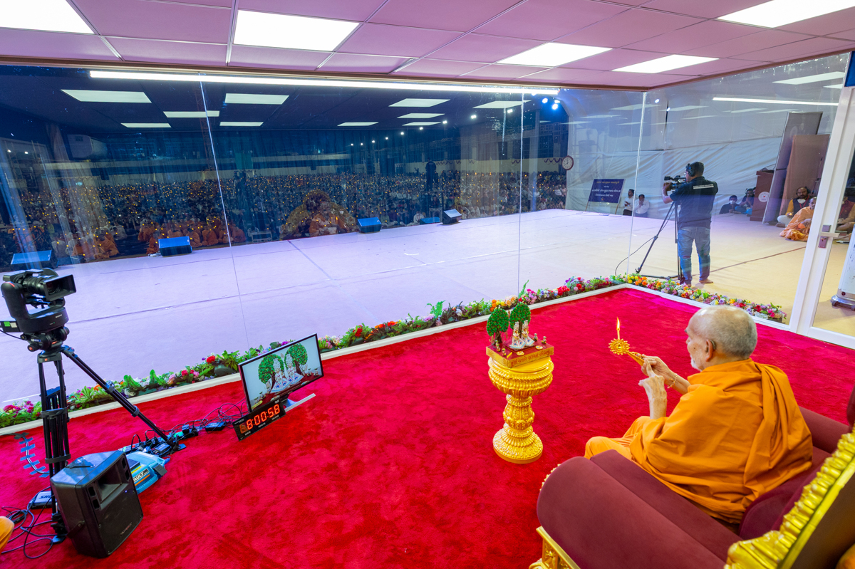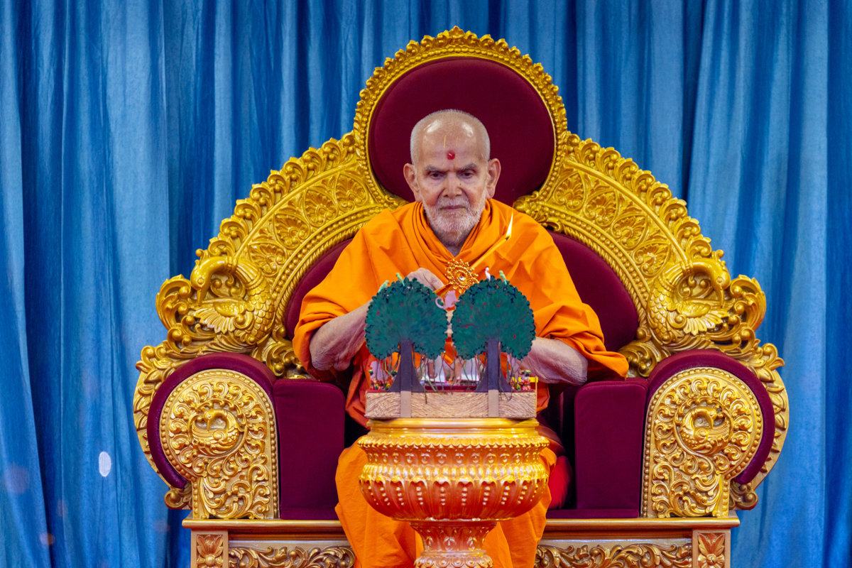 Swamishri performs the morning arti