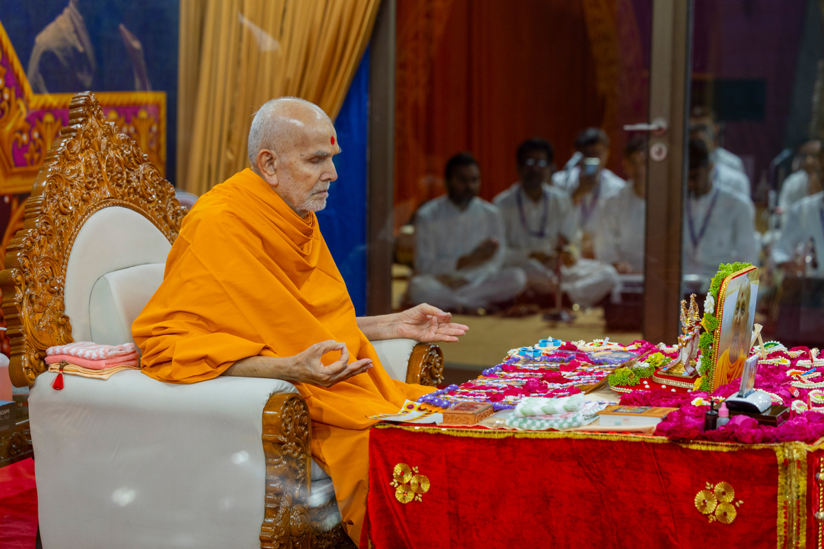 Swamishri meditates in his daily puja
