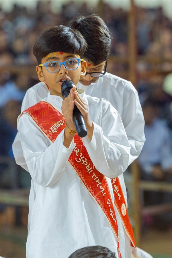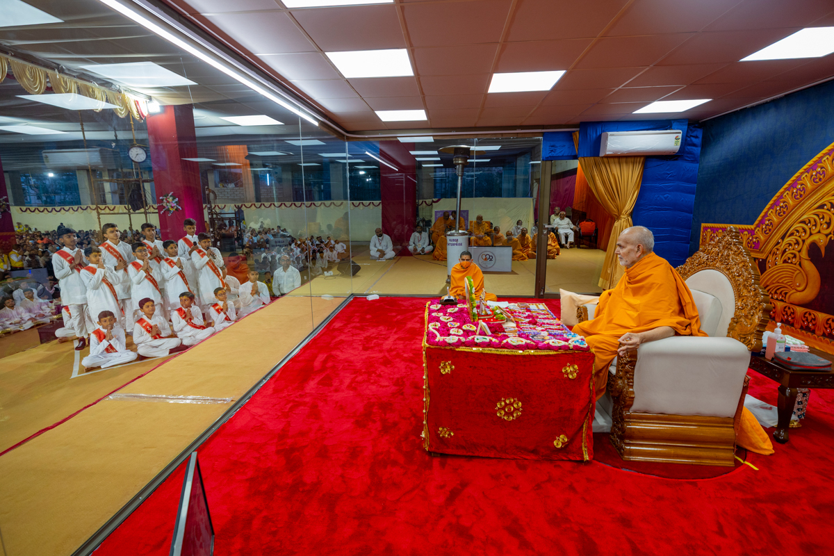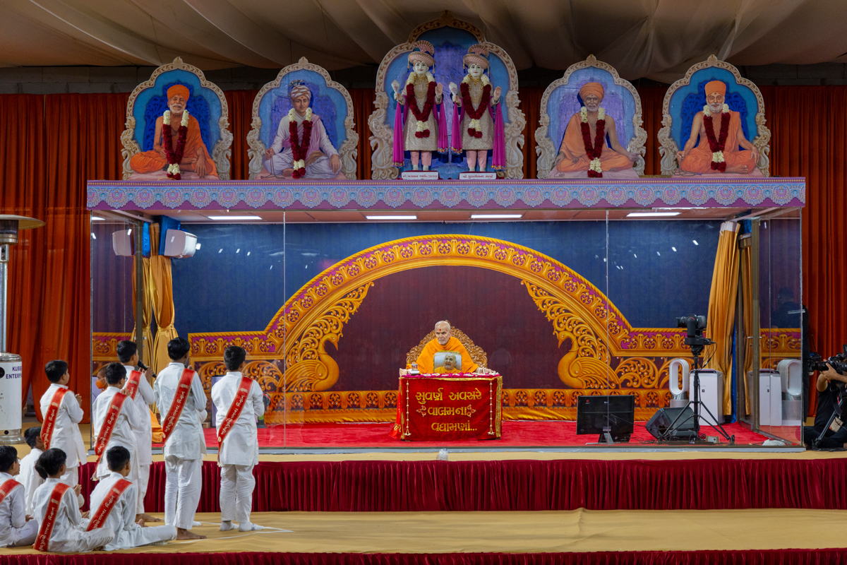 Swamishri listens to recitations by the balaks