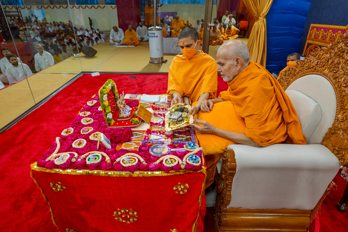 Swamishri offers thal to Thakorji
