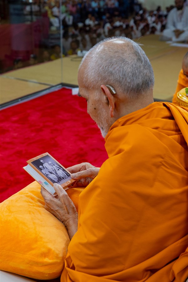 Swamis doing darshan of Swamishri