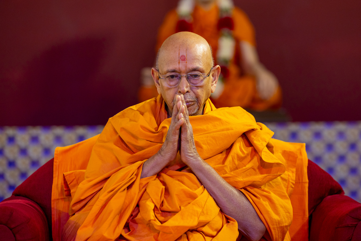 Swamishri greets all with folded hands