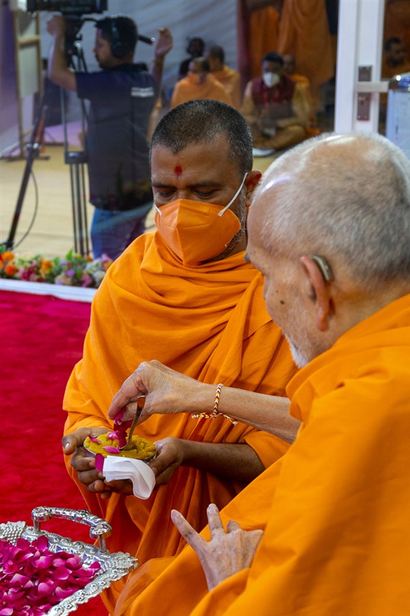 Swamishri applies a chandlo