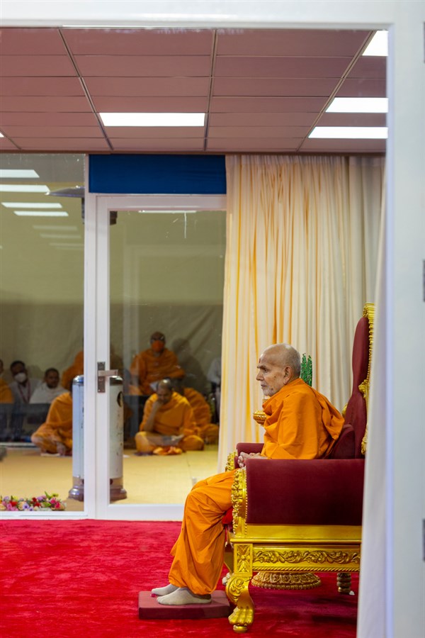 Swamishri blesses the morning assembly