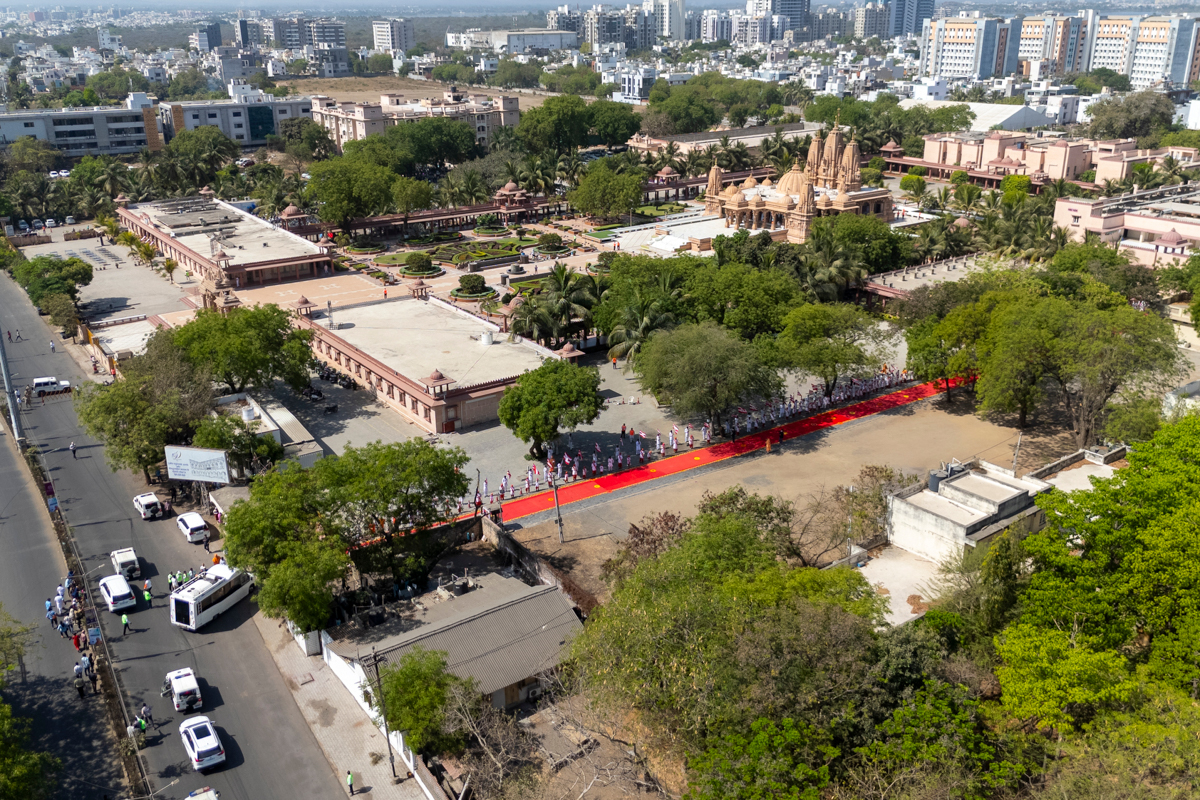 Aerial view of BAPS Shri Swaminarayan Mandir, Bhavnagar