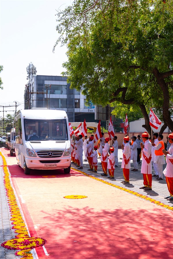 Swamishri arrives in Bhavnagar