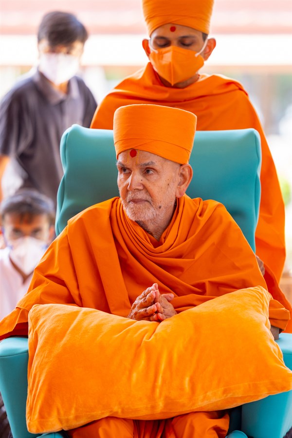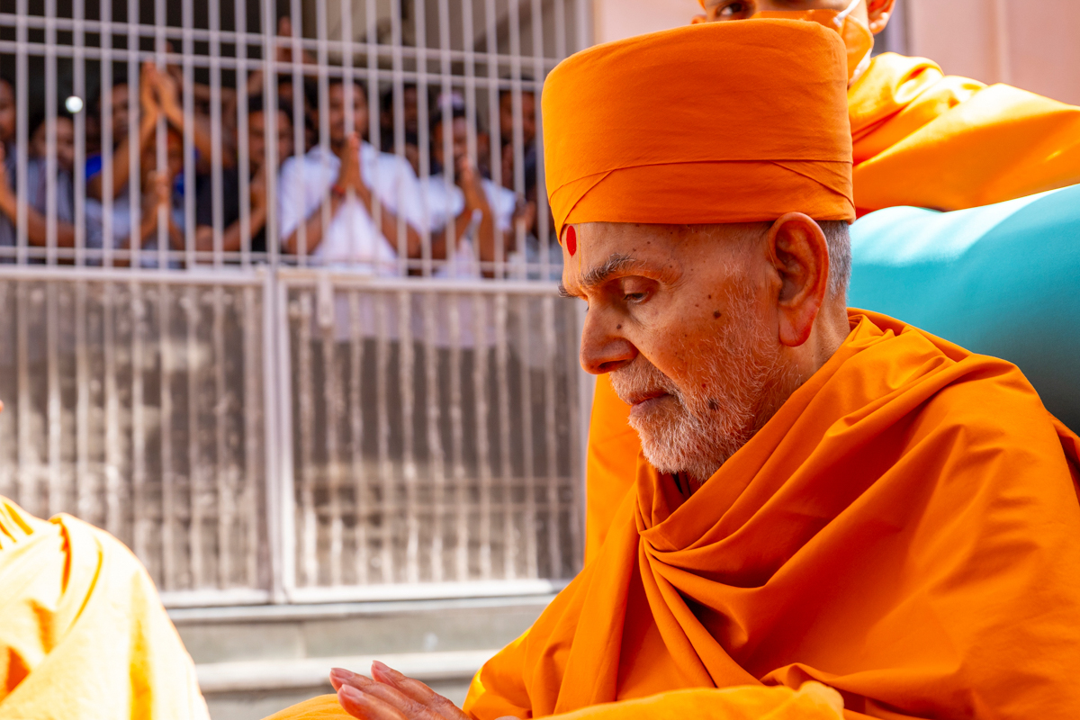 Swamishri greets all with folded hands