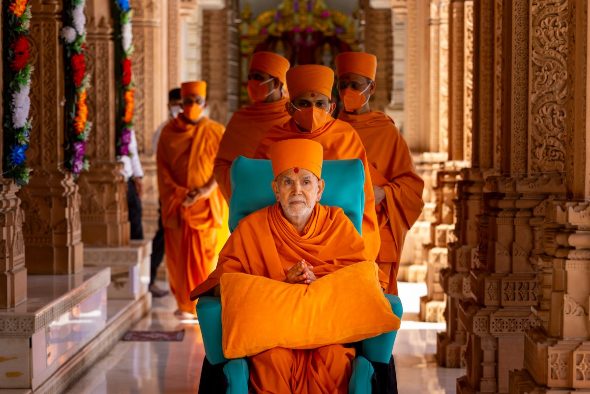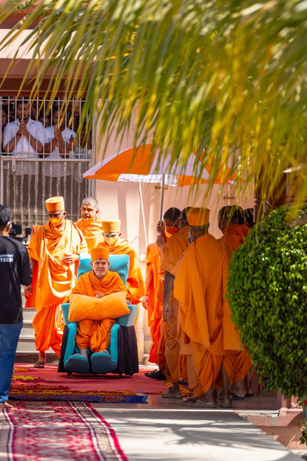 Swamishri on his way to Thakorji's darshan