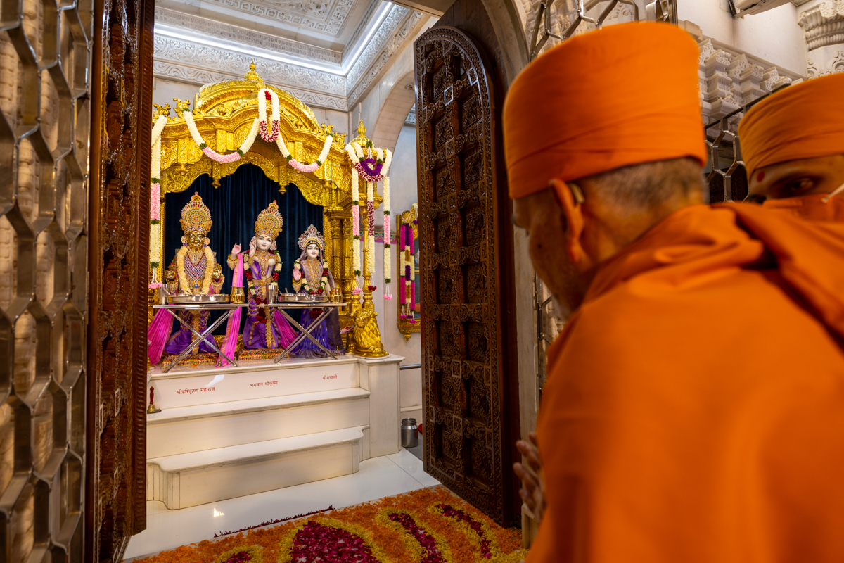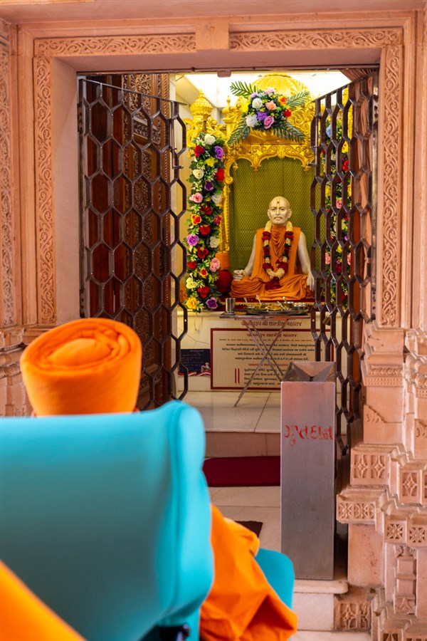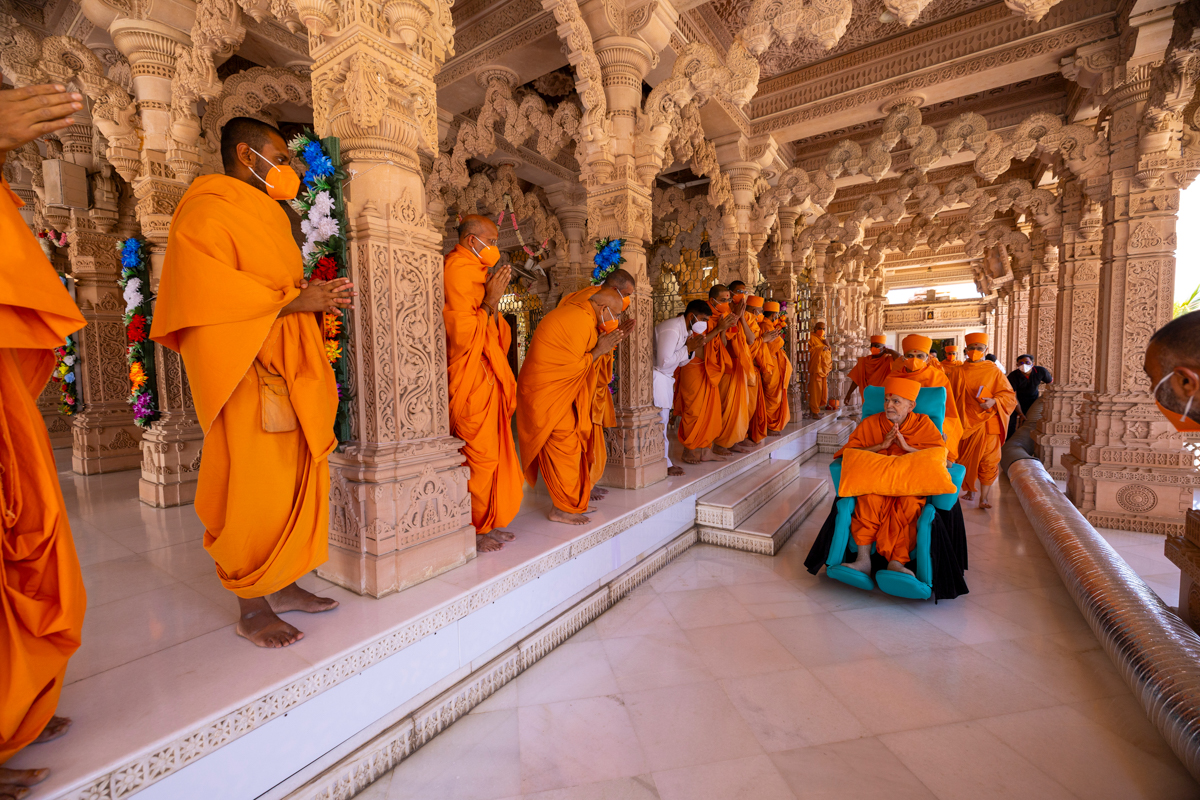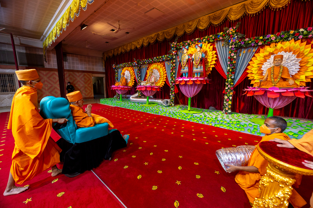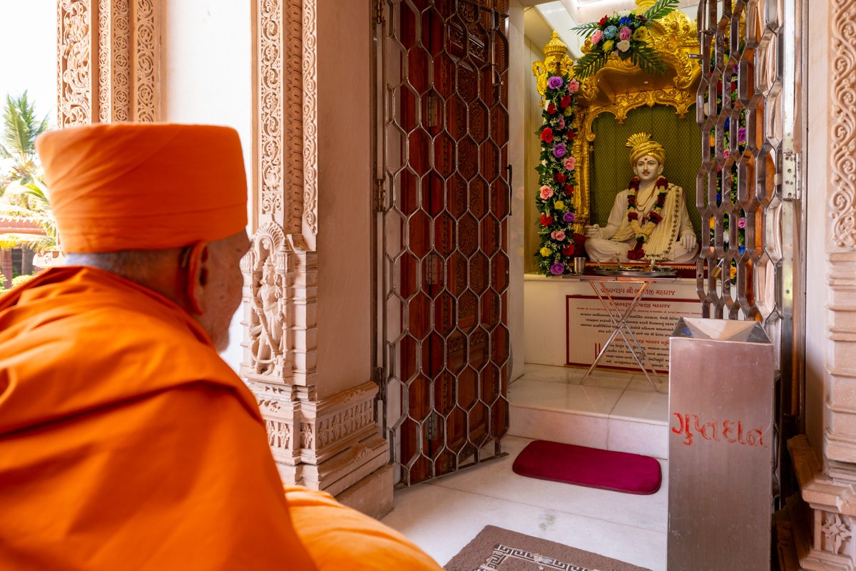 Swamishri arrives for Thakorji's darshan