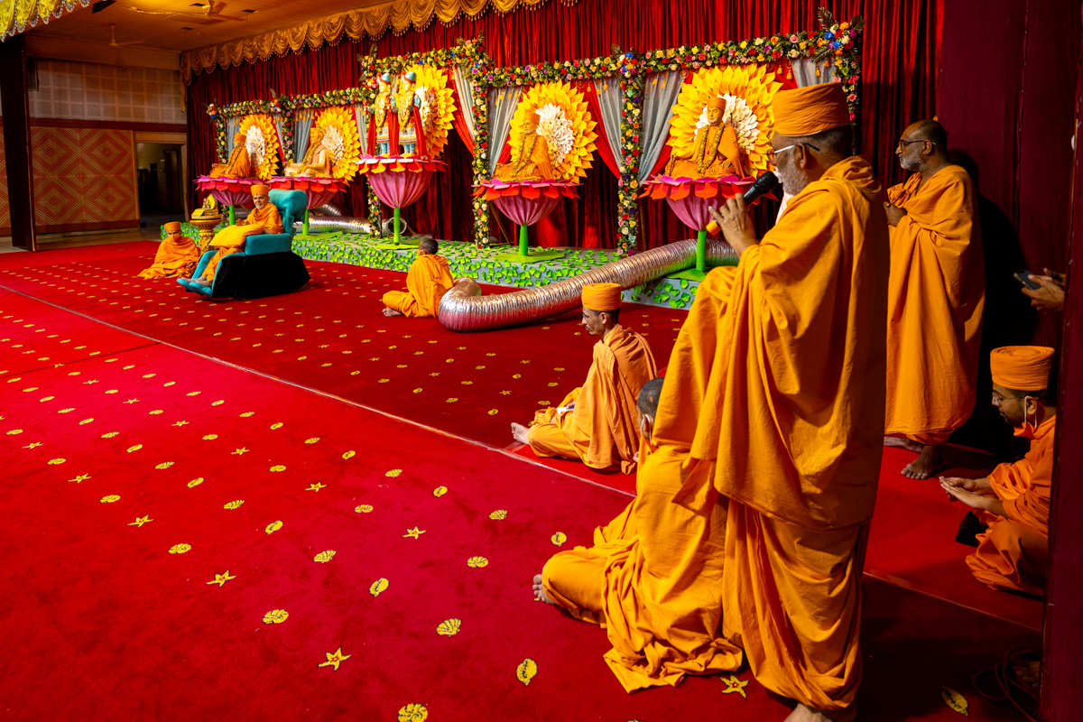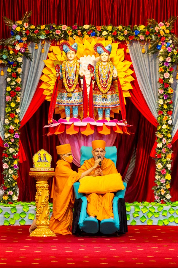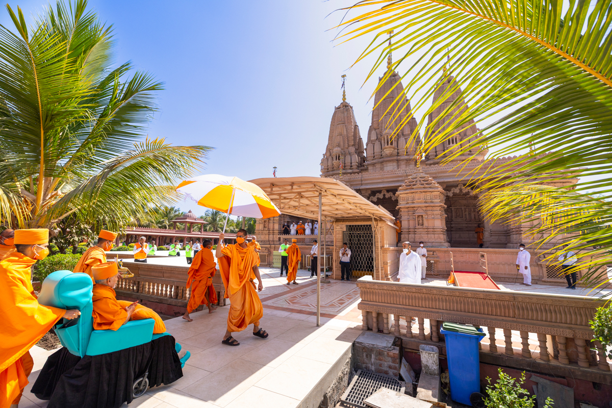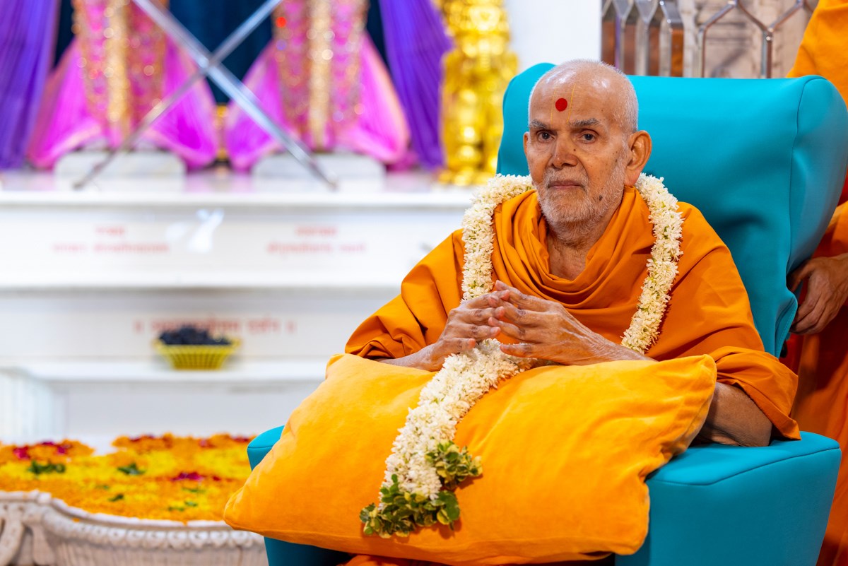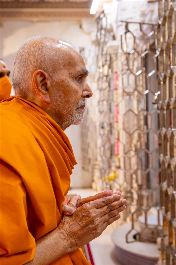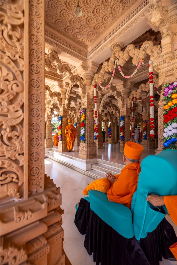 Swamishri arrives for Thakorji's darshan