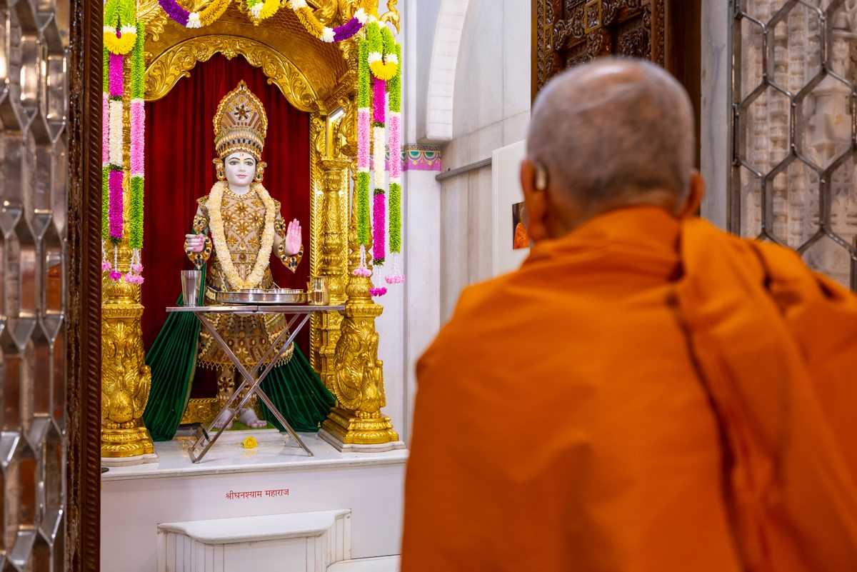 Swamishri engrossed in darshan of Shri Ghanshyam Maharaj