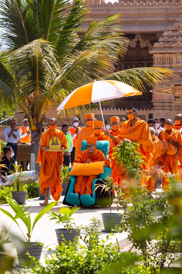 Swamishri in the mandir campus