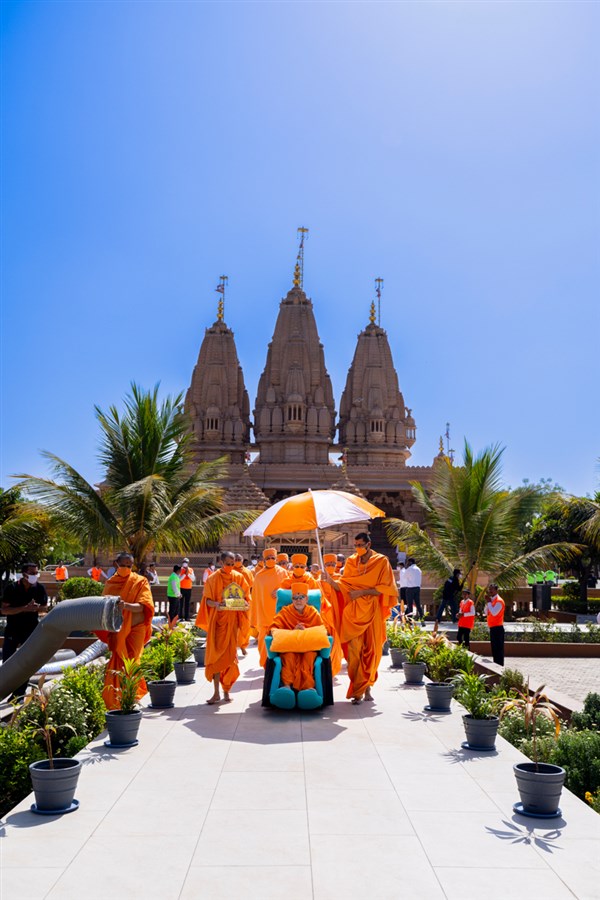 Swamishri in the mandir pradakshina