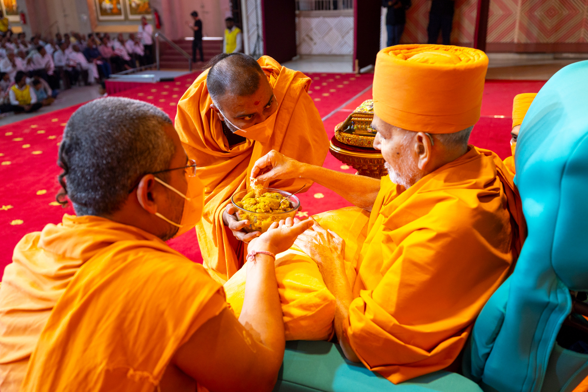 Swamishri sanctifies prasad