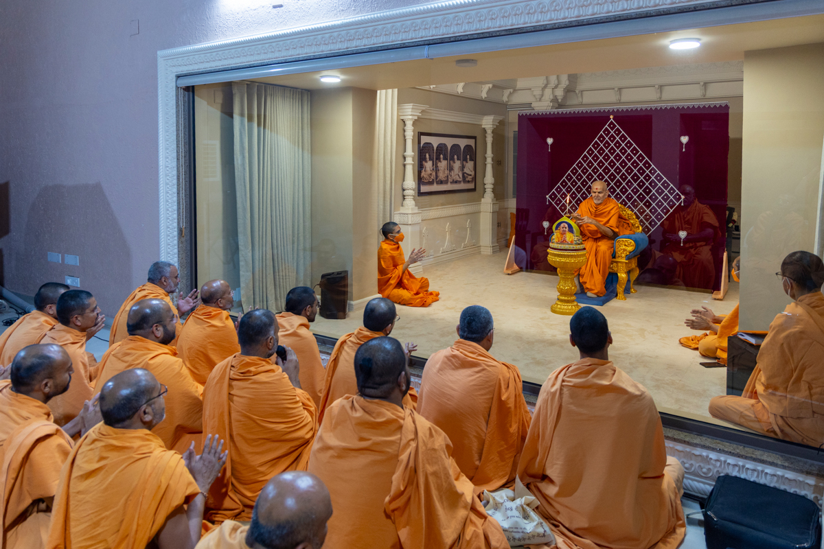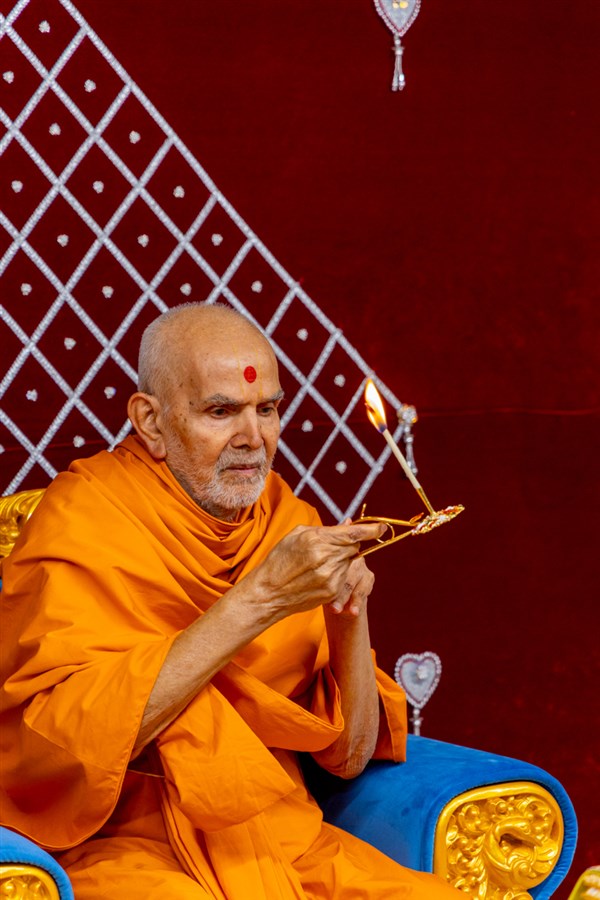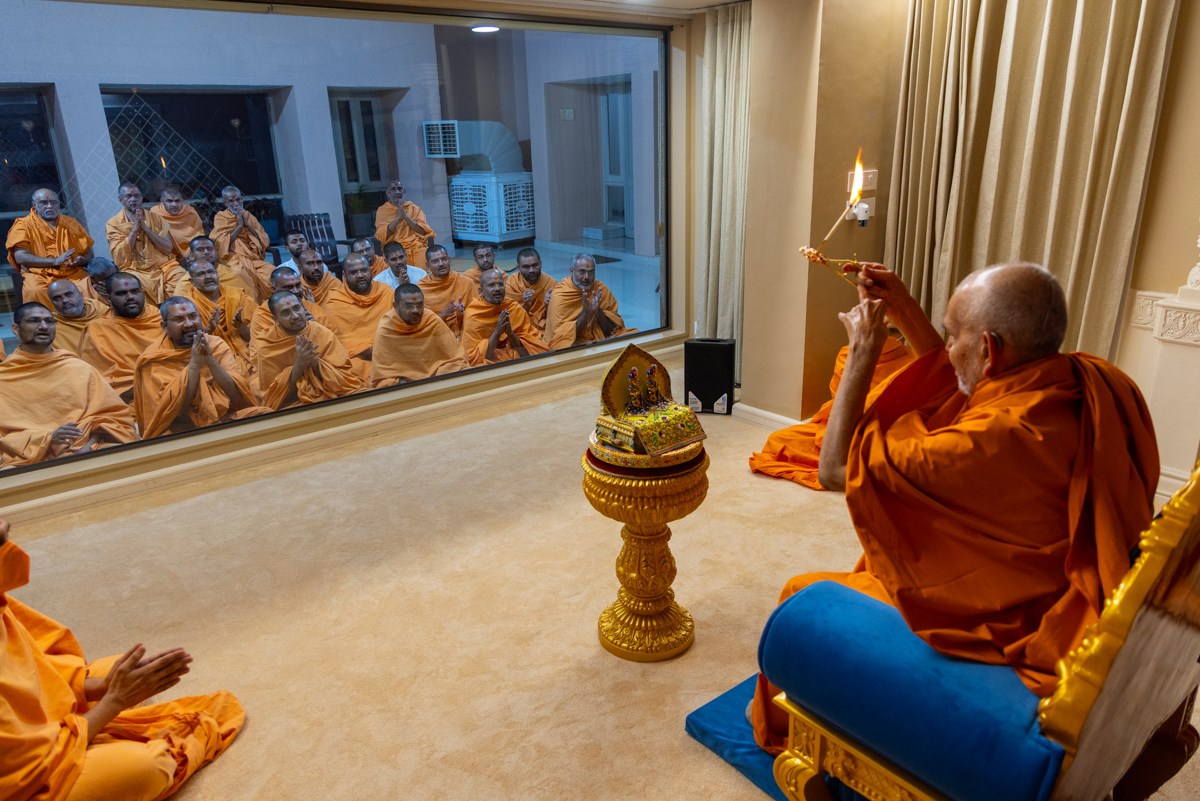 Swamishri performs the evening arti