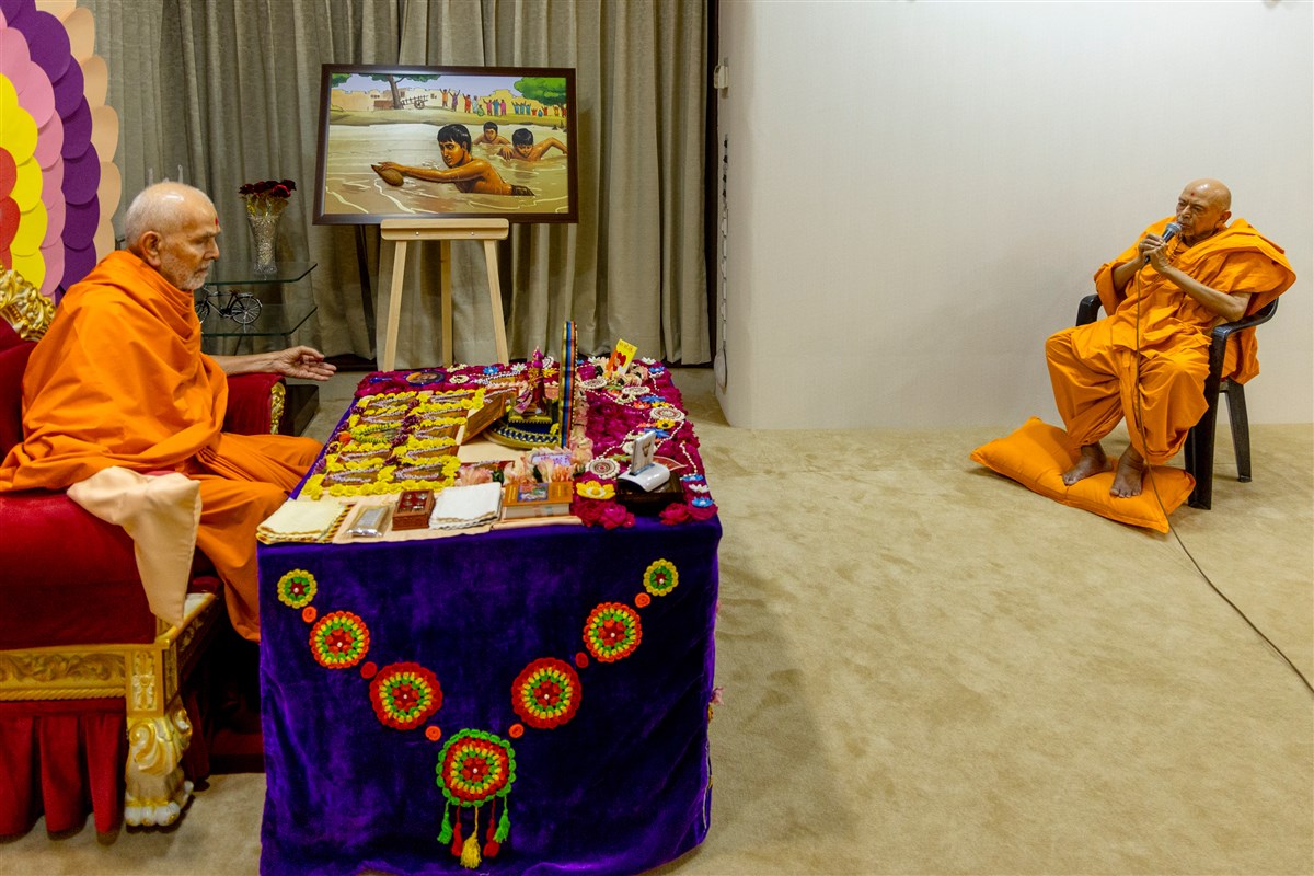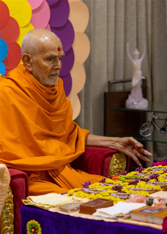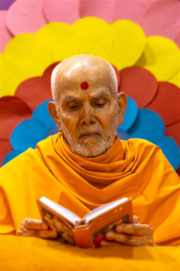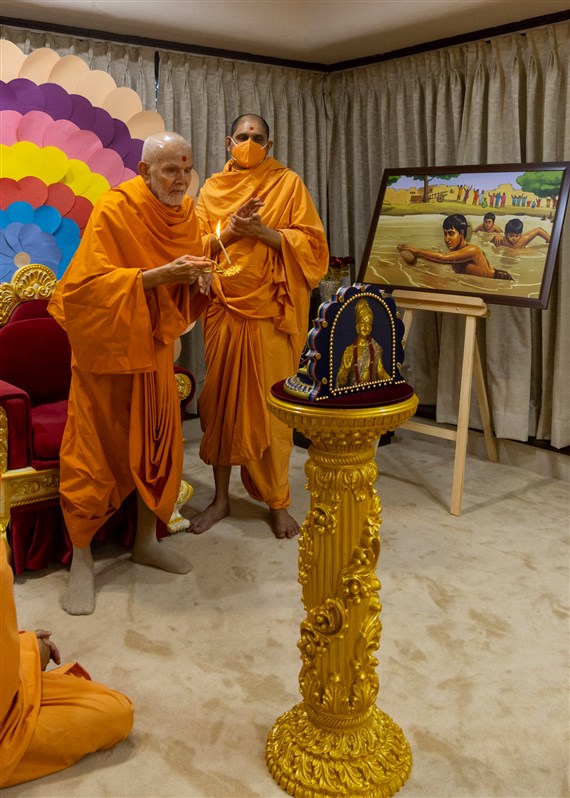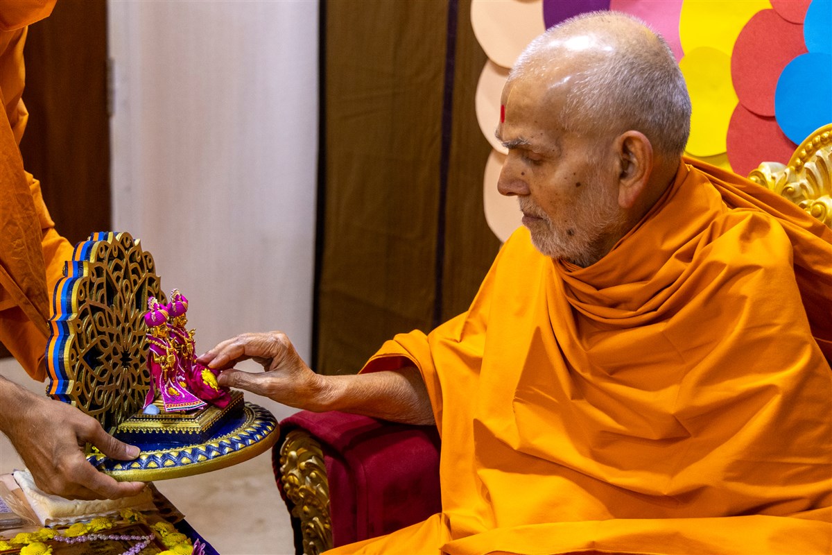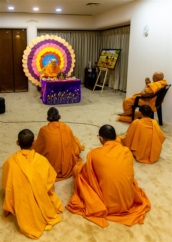 Param Pujya Mahant Swami Maharaj performs his daily puja