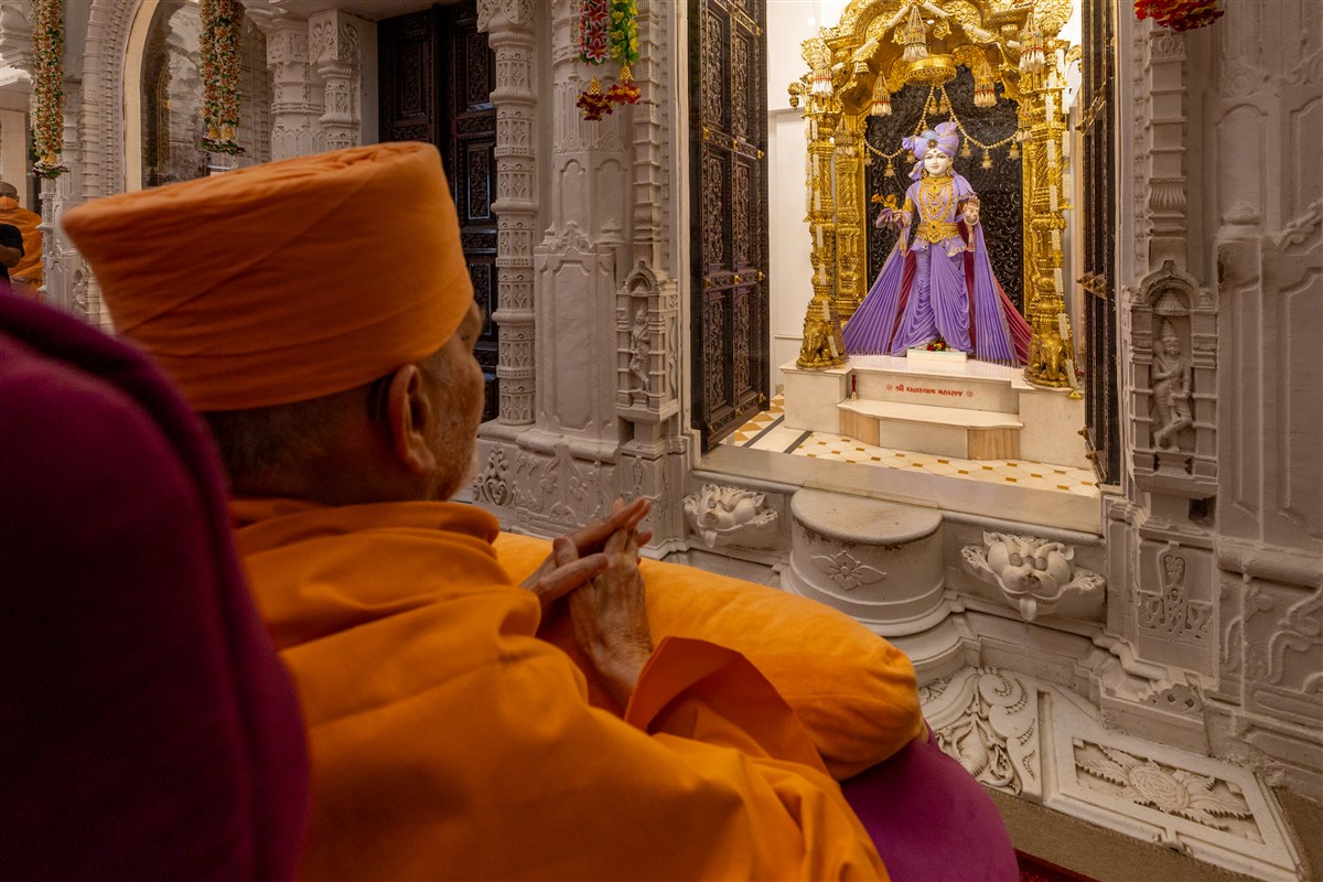Swamishri engrossed in darshan of Shri Ghanshyam Maharaj