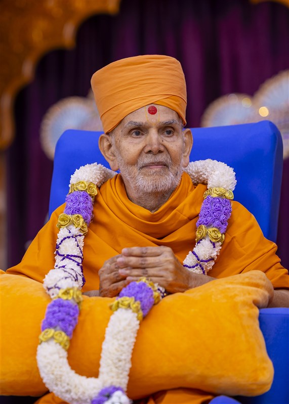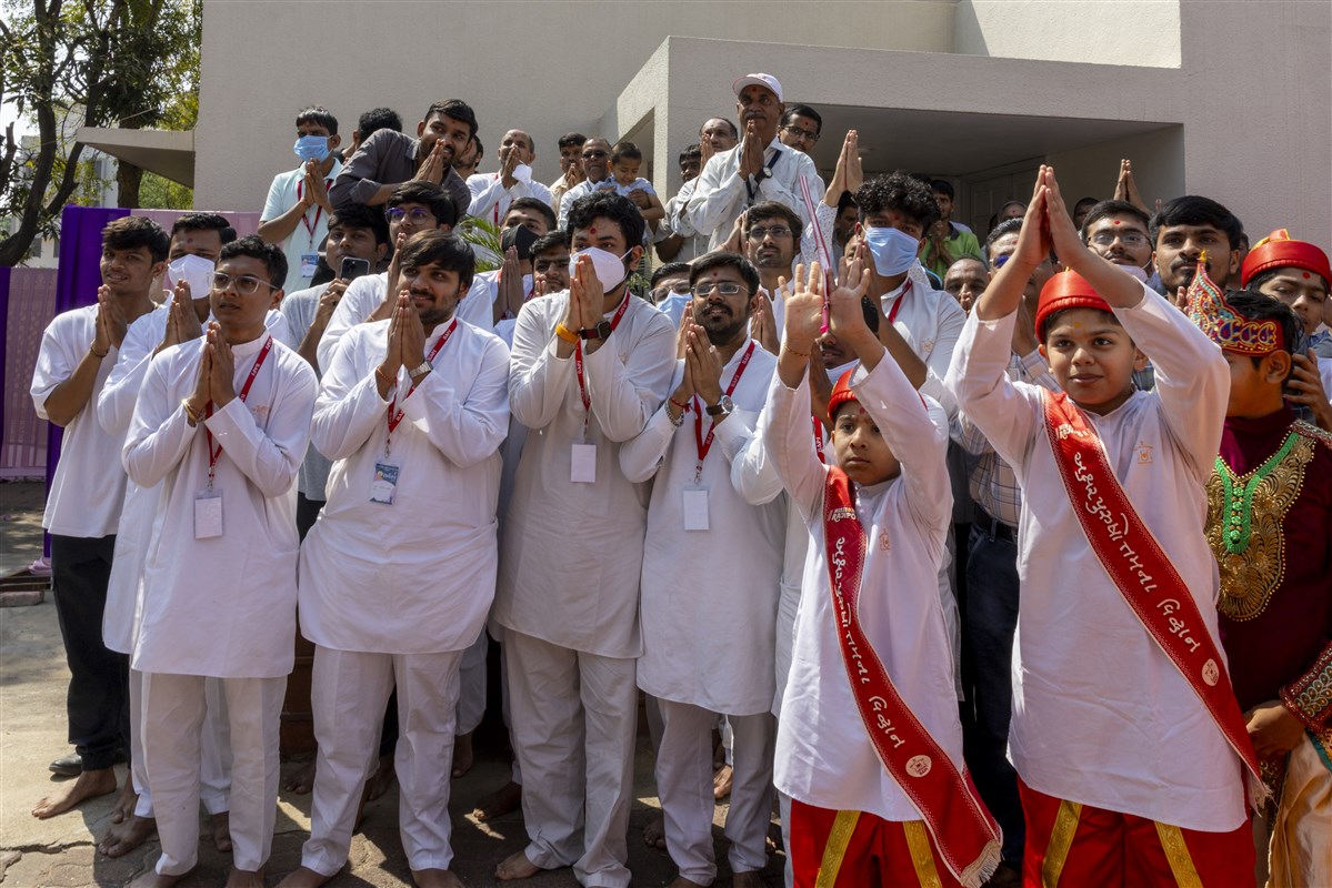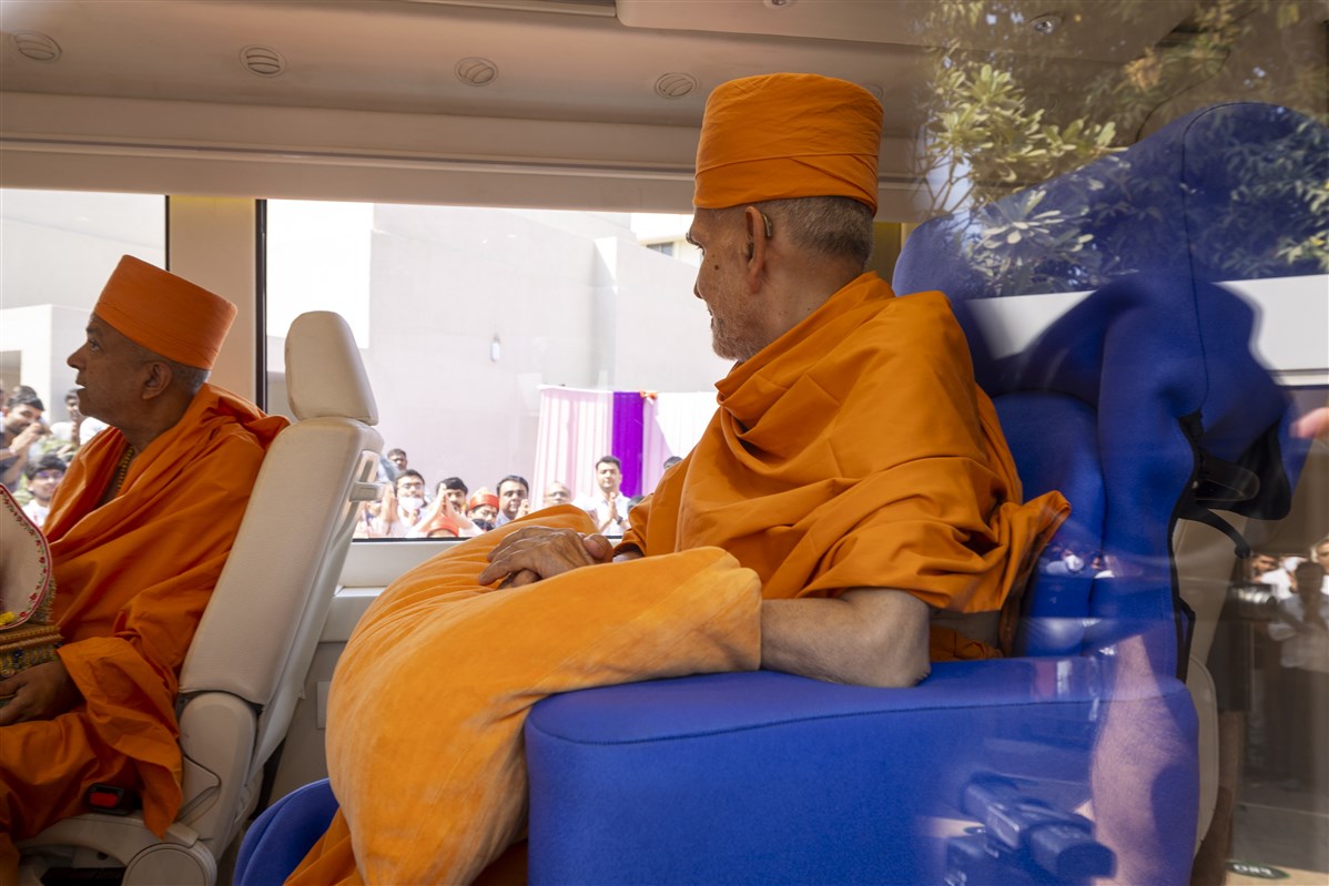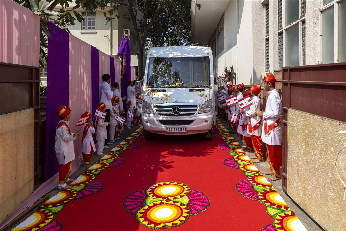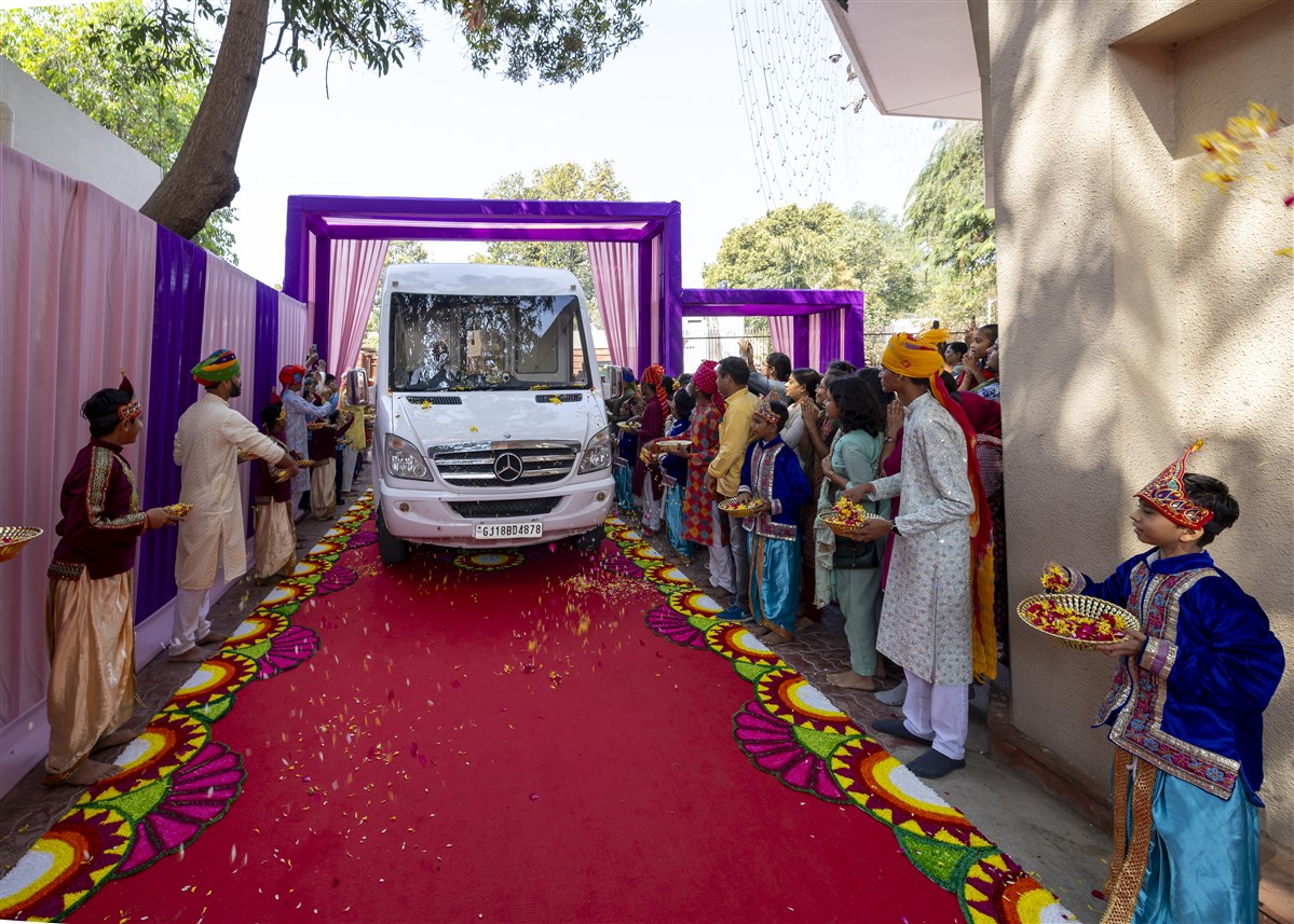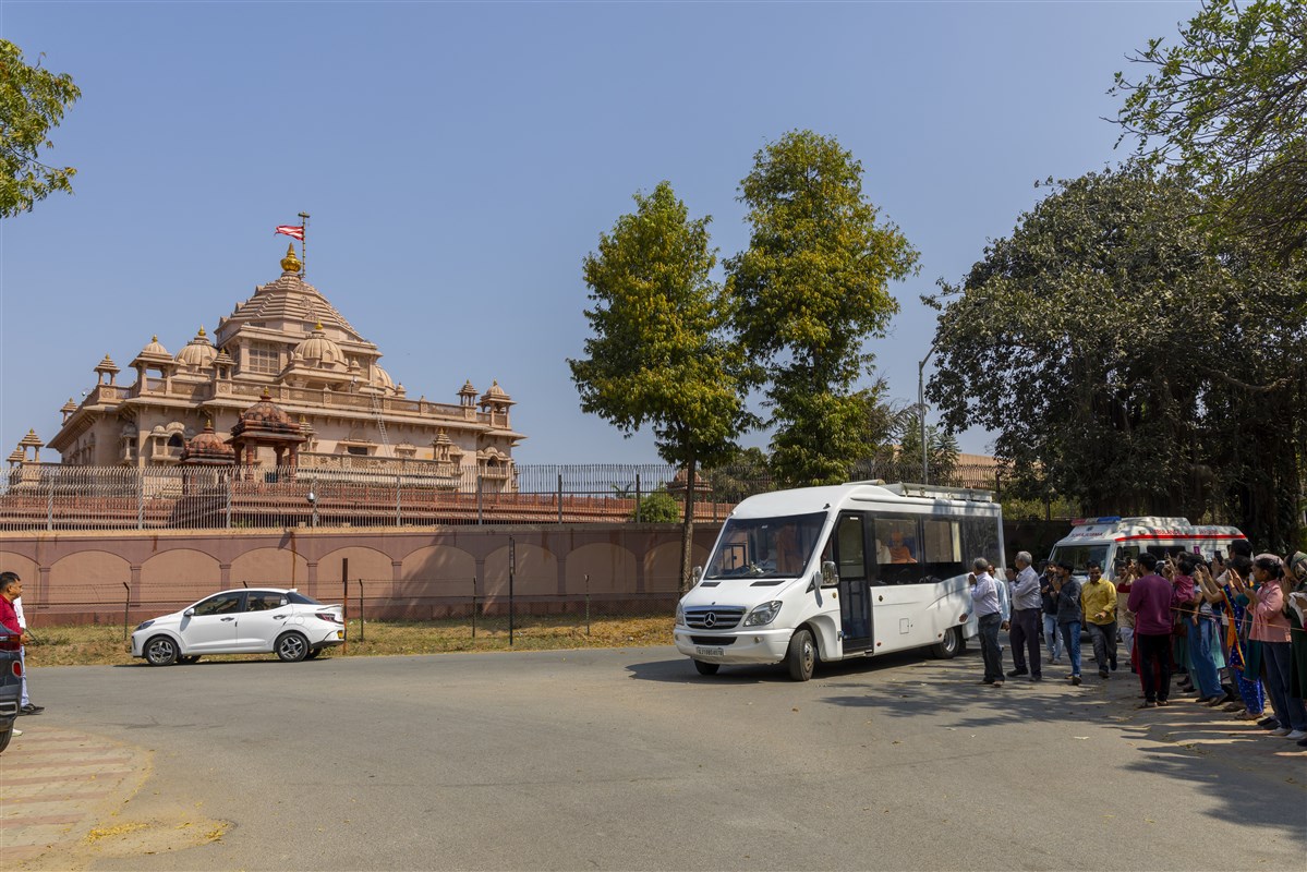 Param Pujya Mahant Swami Maharaj arrives at Swaminarayan Akshardham, Gandhinagar